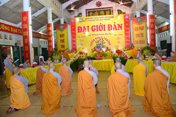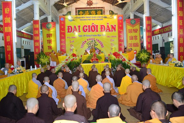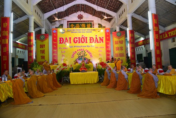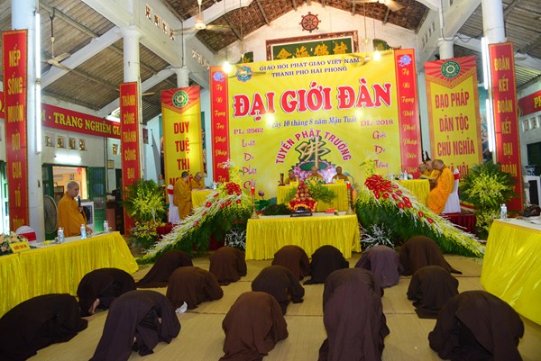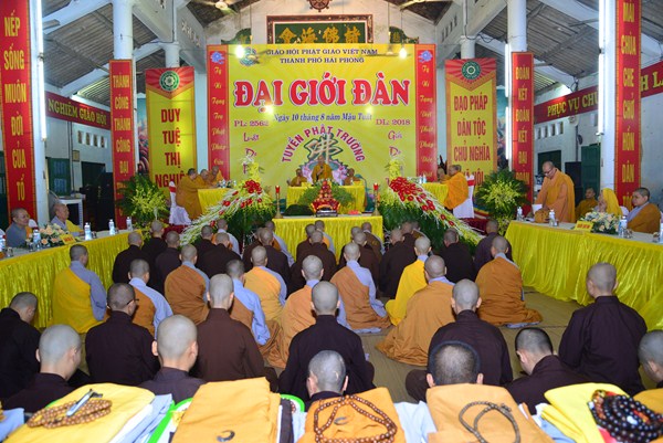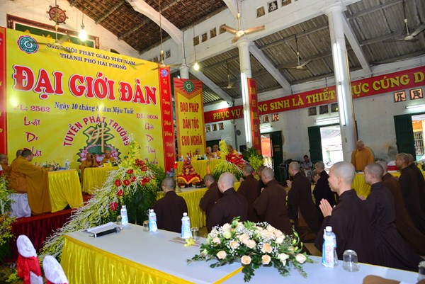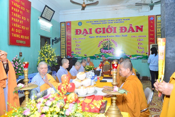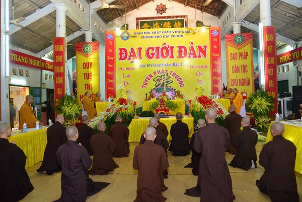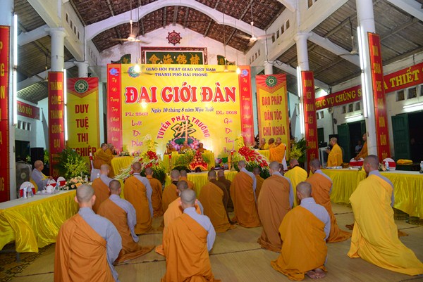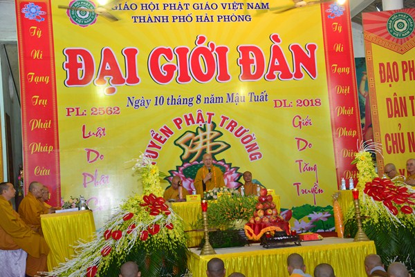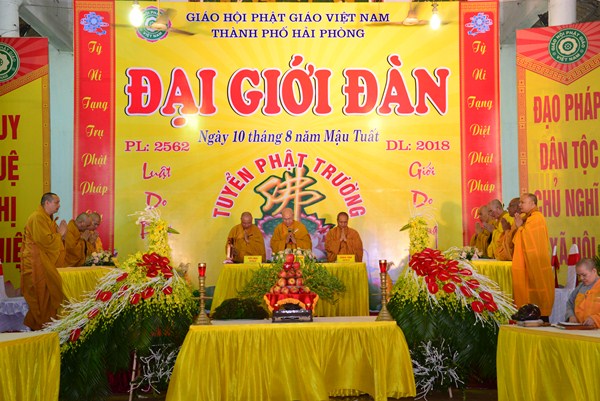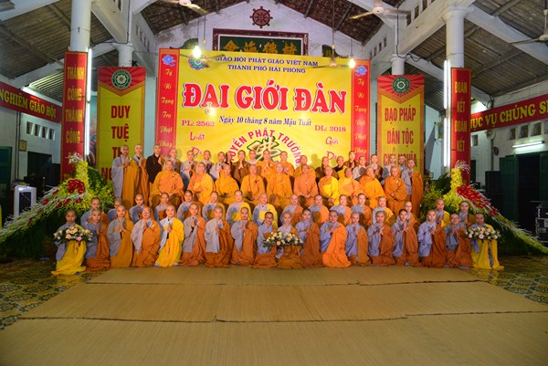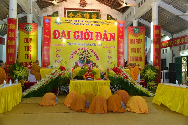 Ngày 19/9/2018 ( nhằm ngày 10/8/Mậu Tuất), tại chùa Nam Hải – Trụ sở BTS GHPGVN thành phố Hải Phòng, số 197 Hai Bà Trưng, phường An Biên, quận Lê Chân, thành phố Hải Phòng đã trang nghiêm, trọng thể diễn ra Đại giới đàn PL.2562 – DL.2018 của GHPGVN thành phố Hải Phòng với 46 giới tử về thụ giới năm nay và được coi là Giới đàn có số lượng giới tử về thụ giới đông nhất từ trước tới nay tại Hải Phòng.