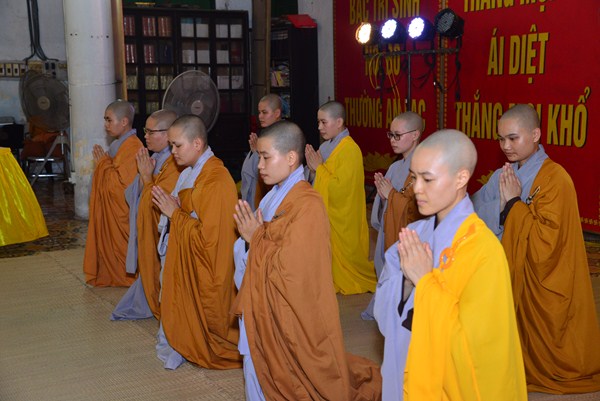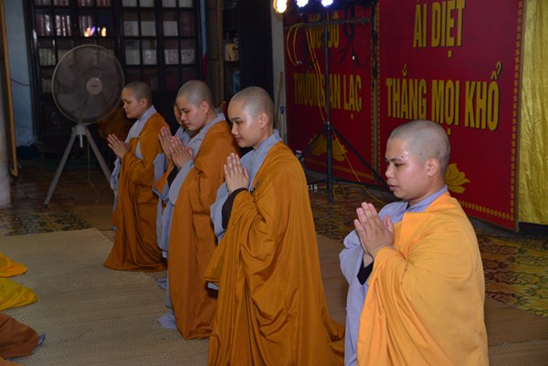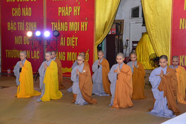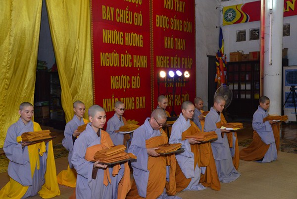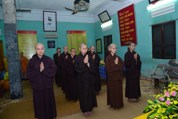 Các giới tử hoan hỷ chuẩn bị vào thụ giới Tỷ Khiêu Ni