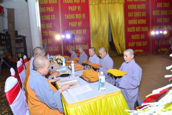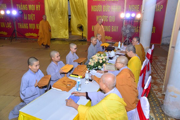 Buổi chiều cùng ngày, chư tôn đức Hội đồng giới sư nhị bộ đã đăng đàn truyền chính pháp Yết Ma cho 10 vị Thức xoa ma na cầu thụ giới Tỷ Khiêu Ni theo luật Phật.