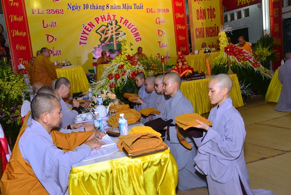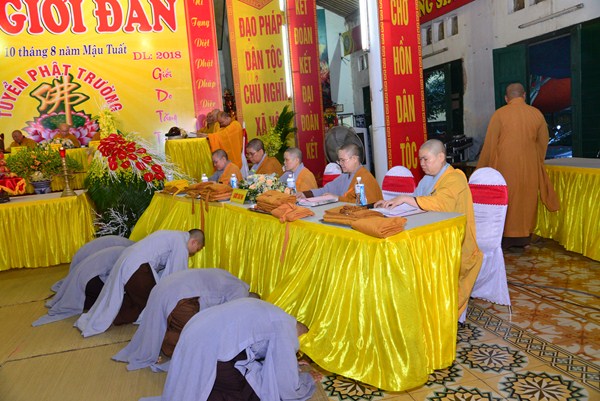 Buổi sáng, Hội đồng giới sư Tăng đã đăng đàn truyền giới Tỷ Khiêu cho 5 giới tử Tăng và truyền Sa Di giới cho 16 giới tử Tăng cầu giới. Song song với đó, Hội đồng giới sư Ni sau khi lễ Hội đồng giới Sư Tăng, tác bạch cầu Tăng đã tiến hành truyền Sa Di Ni giới cho 15 giới tử Ni đã trúng tuyển trong kỳ thi khảo hạch giới đàn trước đó.