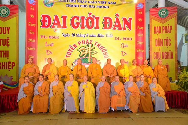 Đại giới đàn của GHPGVN thành phố Hải Phòng PL. 2562 – DL. 2018 đã được thành tựu viên mãn, chư vị nghiệp sư đã thành kính cùng các giới tử lễ tạ Hội đồng giới sư và chụp hình lưu niệm cùng Hội đồng giới sư sau khi kết thúc giới đàn.