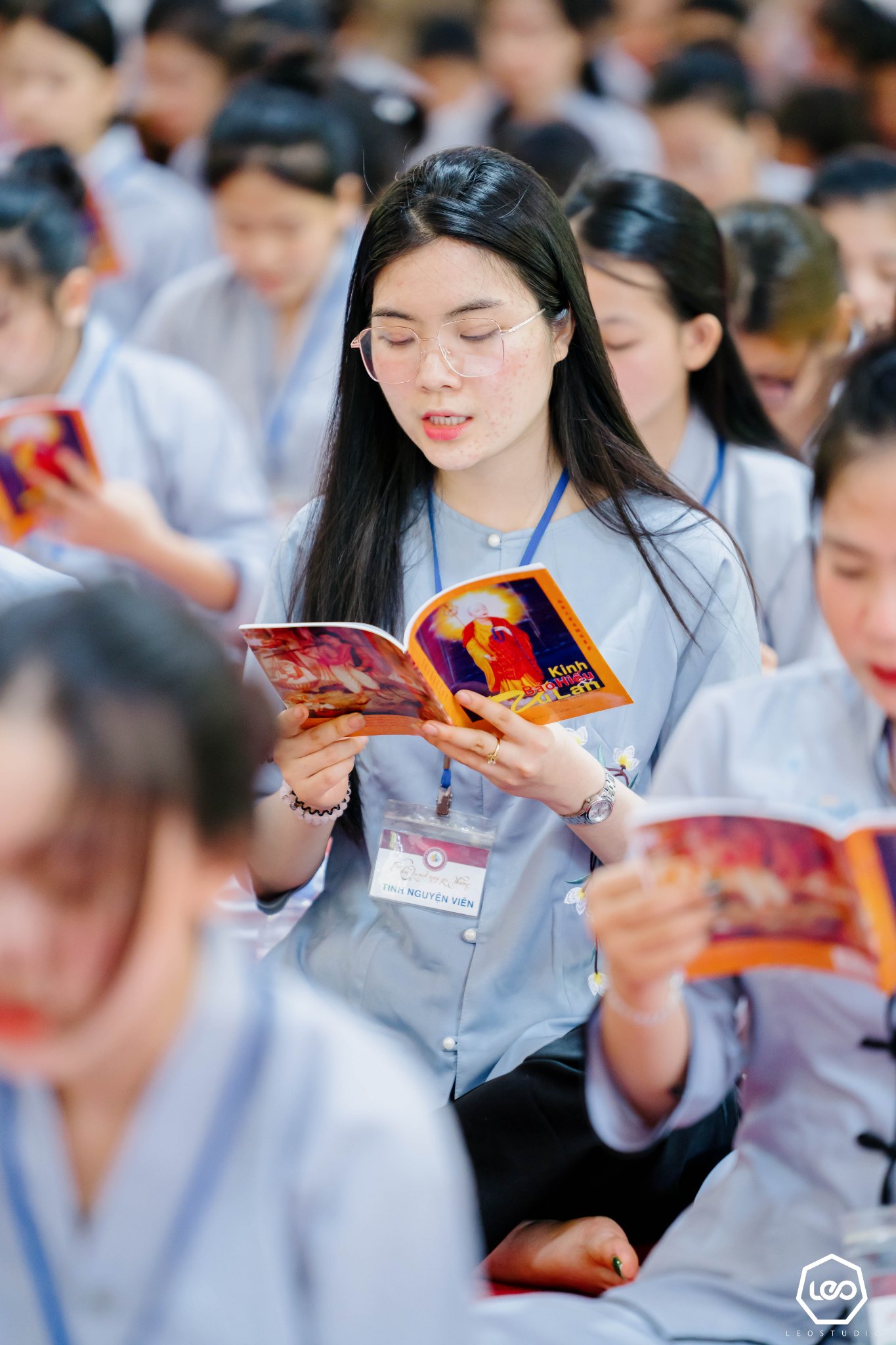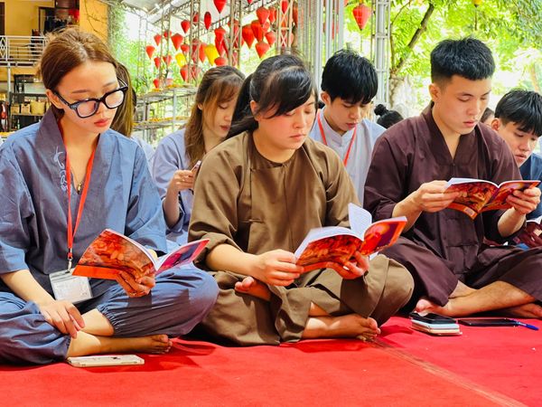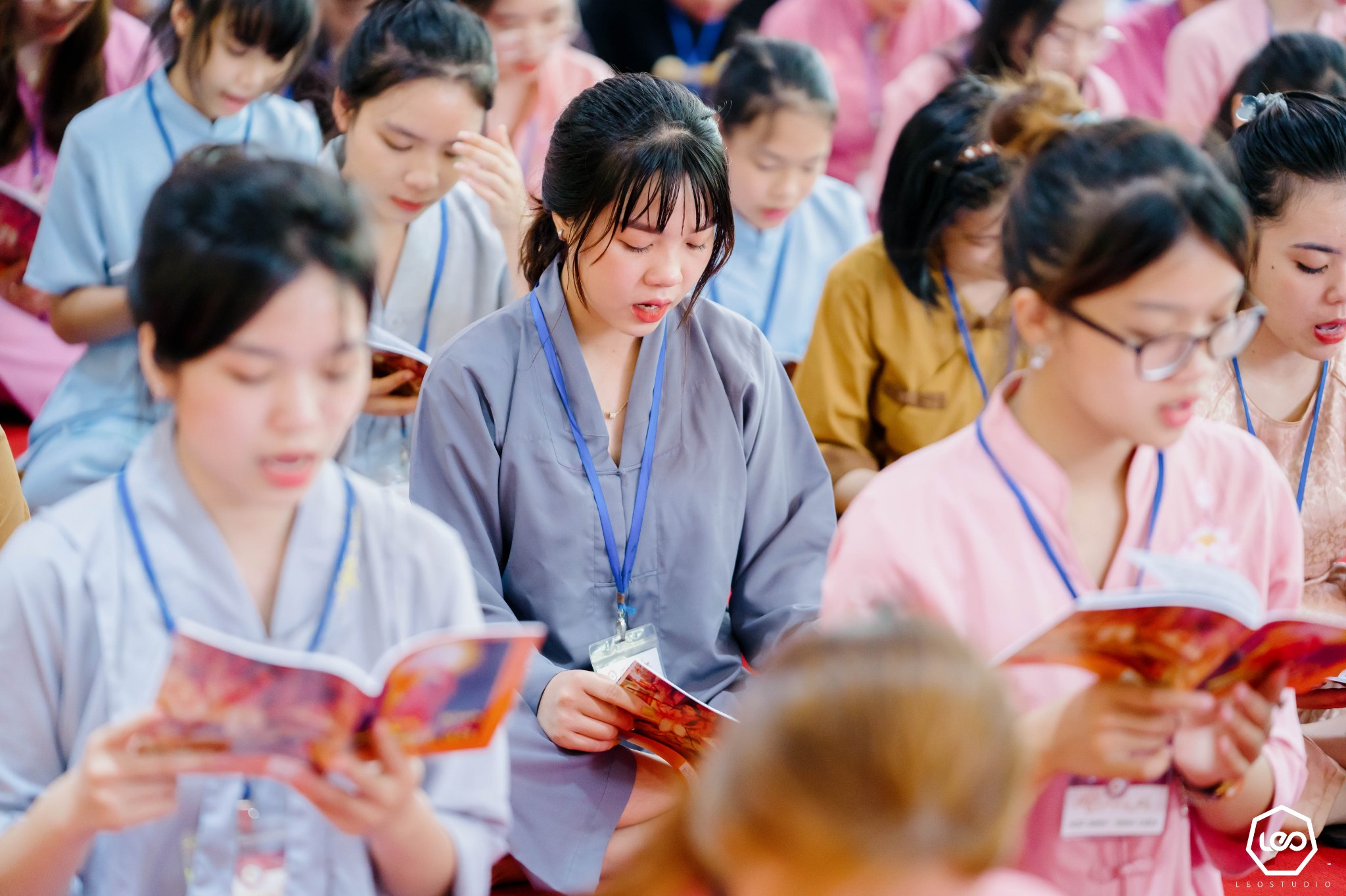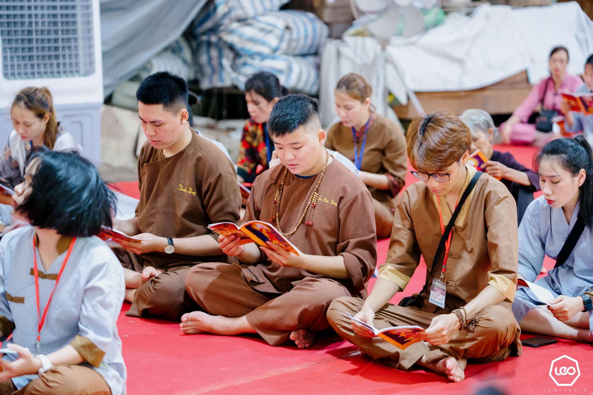 Ngay sau khi kết thúc buổi lễ khai mạc, hơn 800 khóa sinh đã chính thức bước vào thời khóa tu tập của khóa tu: “Một ngày yêu thương” lần thứ 8 với thời khóa tụng kinh Vu Lan – Báo Hiếu, thông qua thời kinh này nhằm hướng dẫn các bạn trẻ biết tụng kinh, hiểu về mục đích của việc tụng kinh. Đặc biệt hơn nữa là, qua lời Phật dạy trong kinh Vu lan – Báo Hiếu, các em khóa sinh hiểu được phần nào công sinh thành dưỡng dục của cha và mẹ, những nỗi vất vả của người mẹ khi phải chịu mọi khổ đau khi sinh nở, cũng như nuôi nấng các em được trưởng thành, có được thân hình, vóc dáng, cuộc sống no ấm như ngày hôm nay.