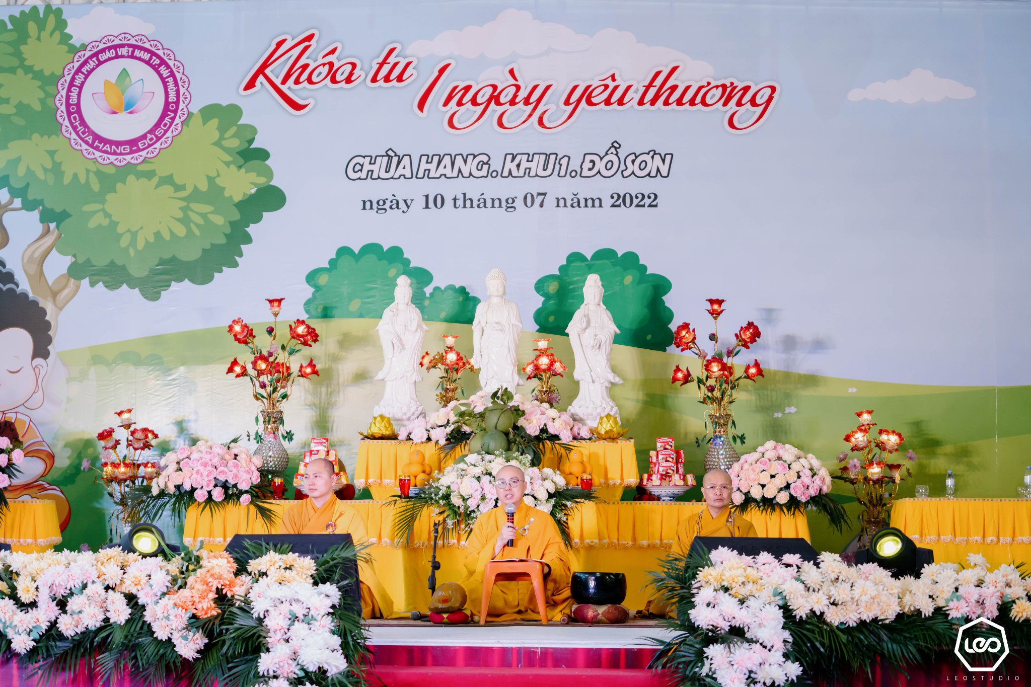 Thay mặt cho Ban tổ chức khóa tu mùa hè “ Một ngày yêu thương”, Đại đức Thích Giác Hiệu – Phó trưởng Ban tổ chức khóa tu, đương gia chùa Hang, Đồ Sơn đã lên phát biểu khai mạc khóa tu. Đại đức đã nhấn mạnh mục đích của việc tổ chức khóa tu mùa hè là để nuôi dưỡng tâm Từ bi, hạnh hỷ xả, hạnh lắng nghe, biết yêu thương mọi người xung quanh, đồng thời tạo thuận duyên cho các em thanh thiếu niên Phật tử và học sinh trong thành phố được giao lưu, chia sẻ, trau dồi kỹ năng sống nhằm hoàn thiện bản thân. Đồng thời, cũng góp phần xây dựng nếp sống văn hóa lành mạnh, tư duy tích cực, nghĩ điều thiện, nói điều thiện, làm việc thiện, đem lại lợi ích thiết thực cho tự thân của các em và nhân rộng ra làm lợi ích cho tuổi trẻ trong cộng đồng xã hội.