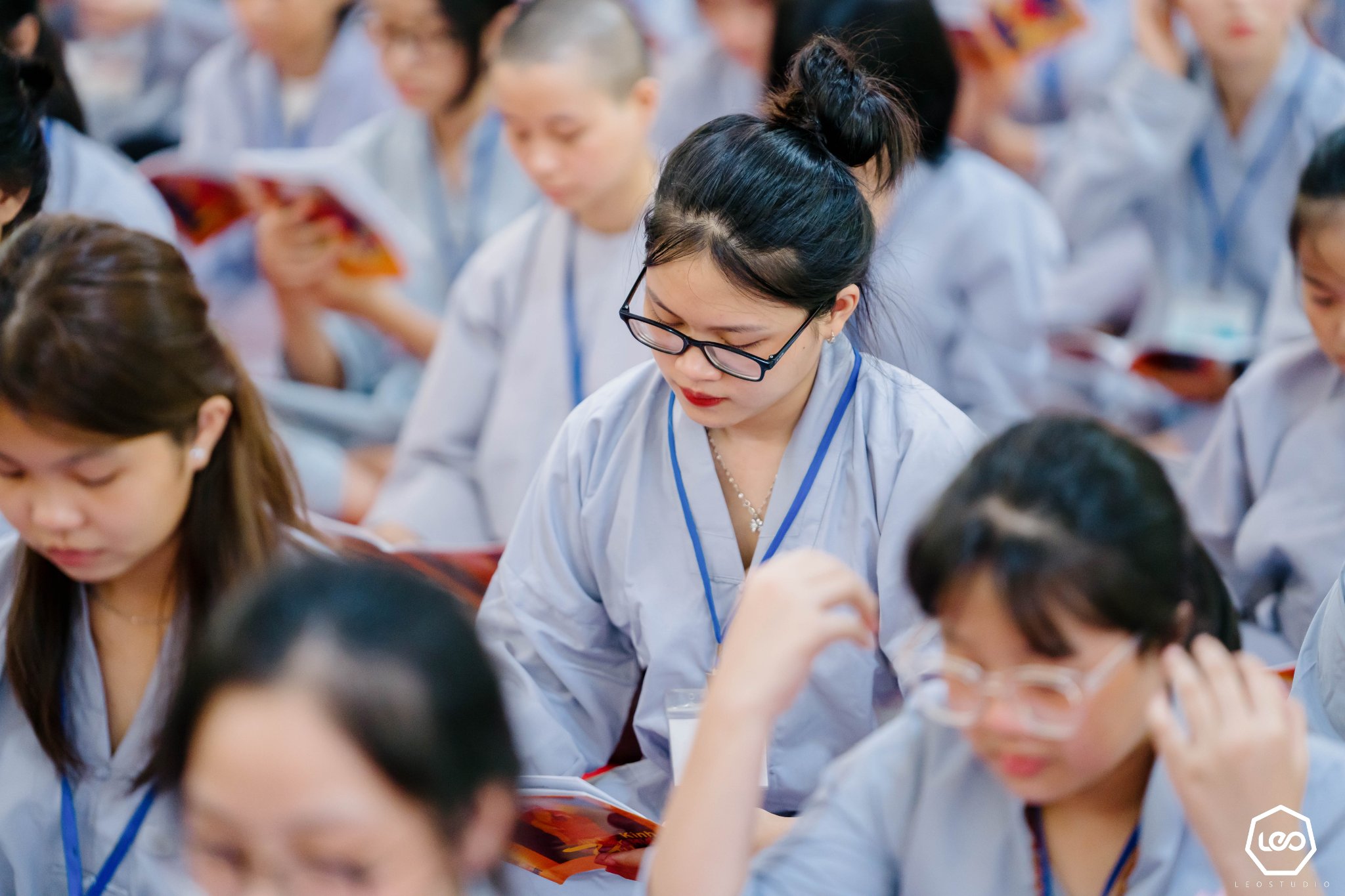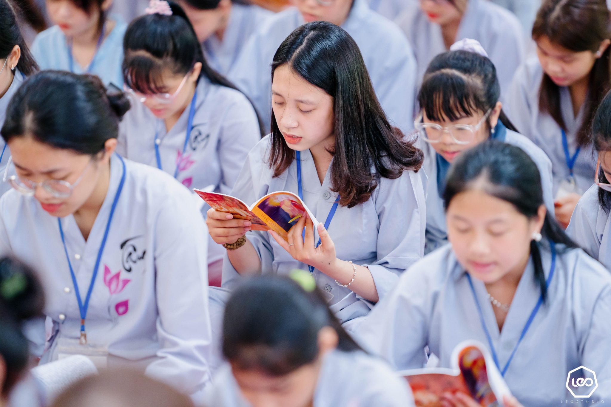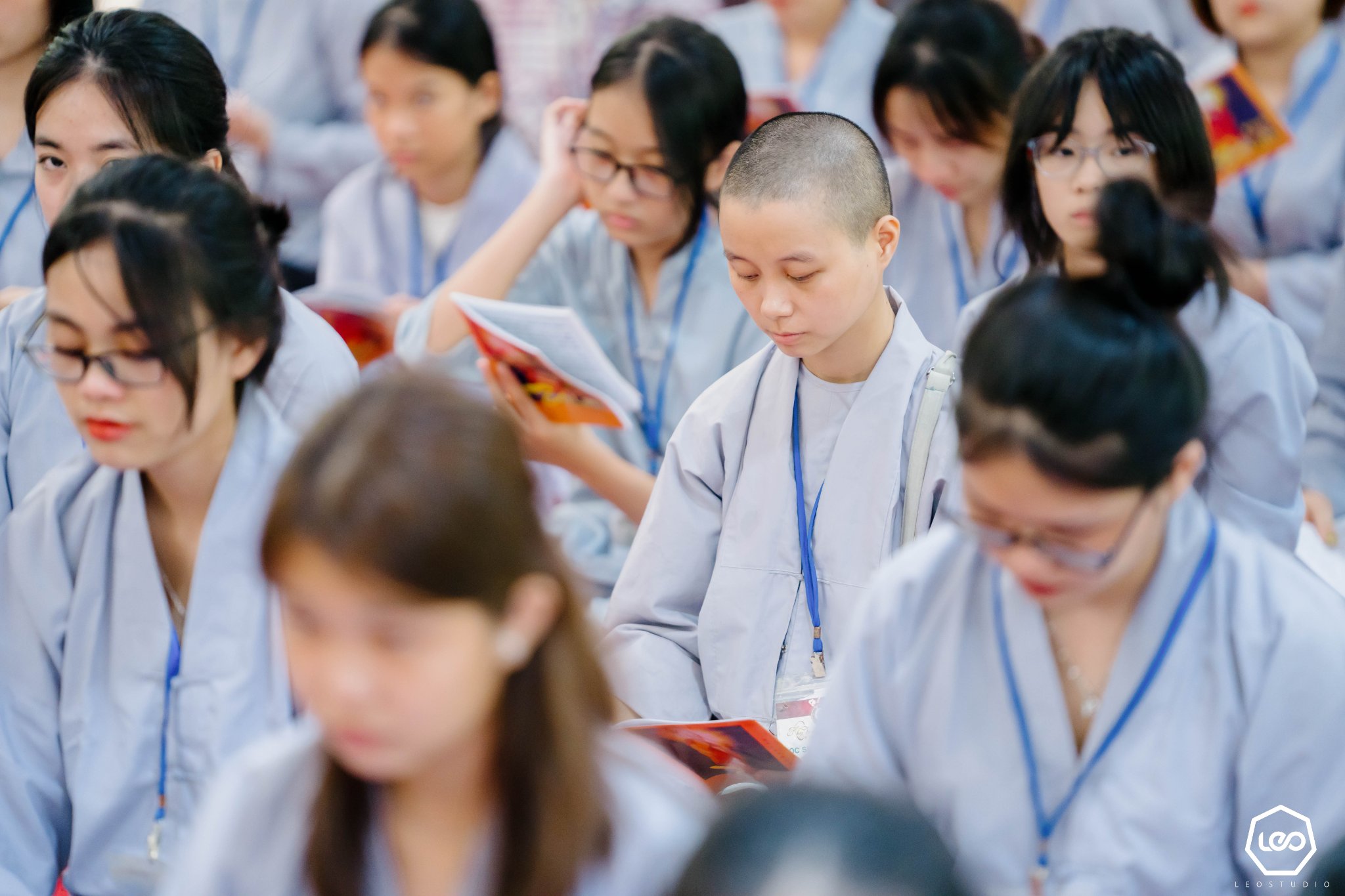 Chư tôn đức hướng dẫn các khóa sinh tụng kinh Vu Lan Báo Hiếu