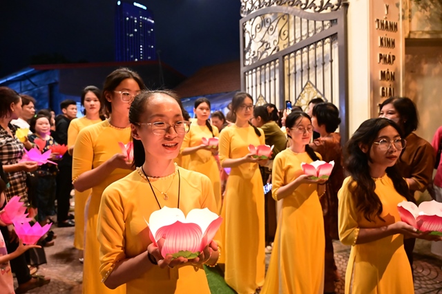 Thanh thiếu niên Phật tử chùa Hưng Long tham dự lễ rước hoa đăng