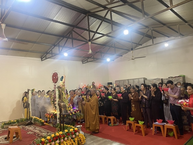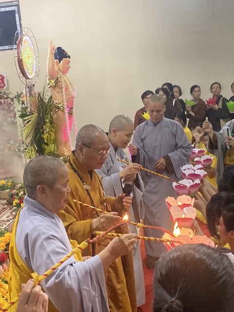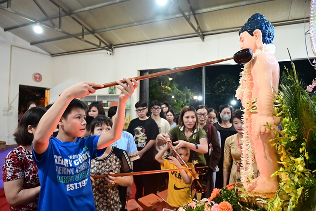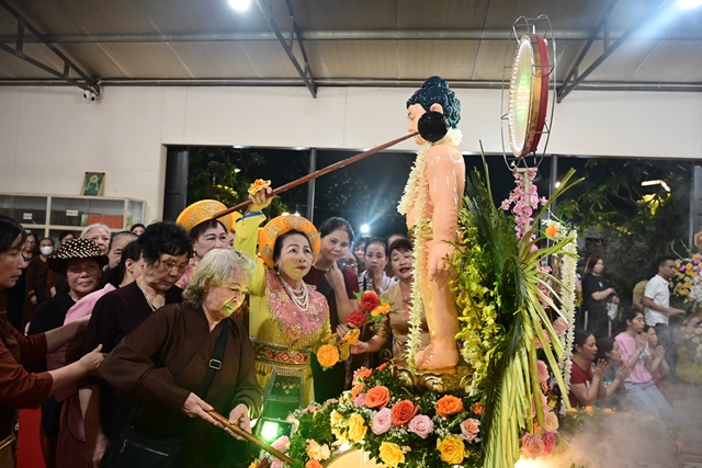 Sau nghi thức tụng kinh “Bát Chánh Đạo”, Chư tôn đức tăng ni và quý Phật tử đã cử hành nghi lễ Mộc dục ( tắm Phật) truyền thống và thả hoa đăng cầu nguyện thế giới hòa bình, chúng sinh an lạc, Phật pháp được trường tồn.