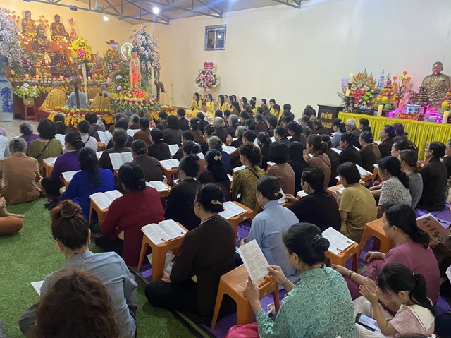 Chư tôn đức và Phật tử tụng kinh ” Bát Chánh Đạo”