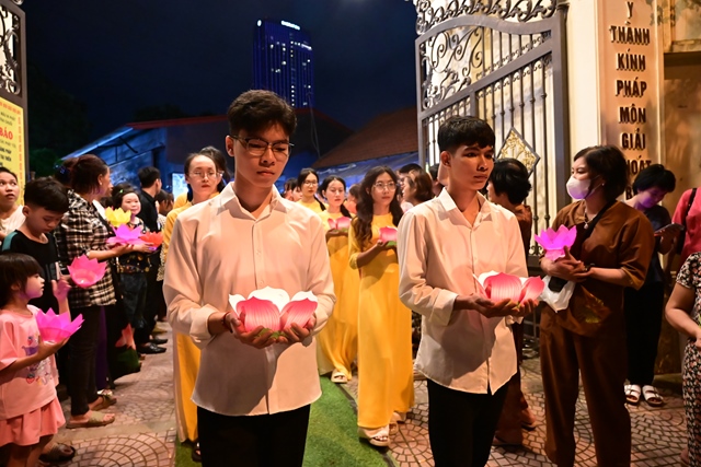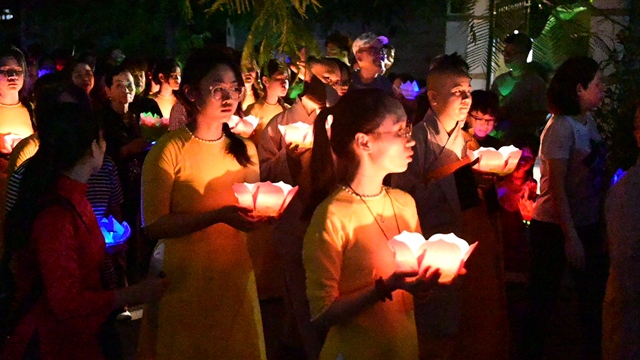 Thanh thiếu niên Phật tử chùa Hưng Long tham dự lễ rước hoa đăng