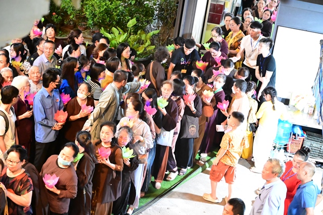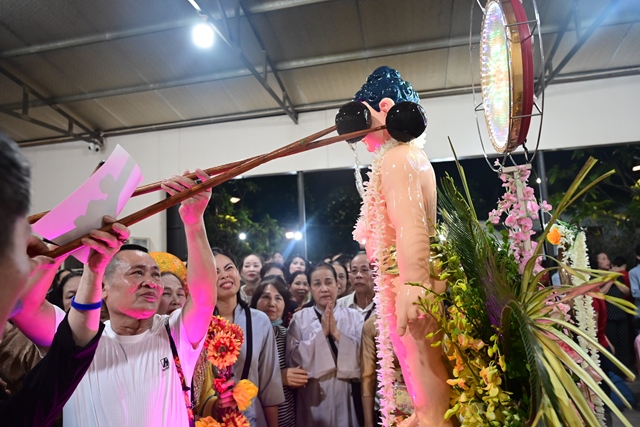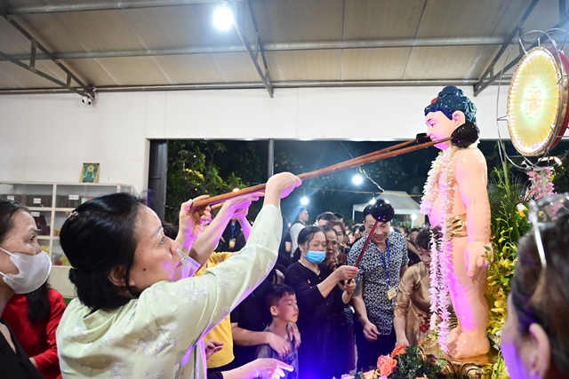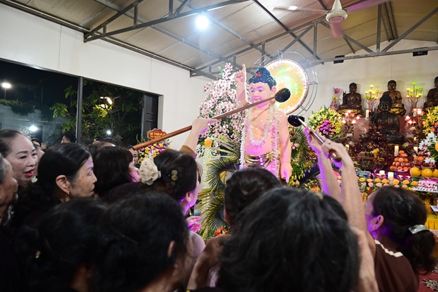 Sau nghi thức tụng kinh “Bát Chánh Đạo”, Chư tôn đức tăng ni và quý Phật tử đã cử hành nghi lễ Mộc dục ( tắm Phật) truyền thống và thả hoa đăng cầu nguyện thế giới hòa bình, chúng sinh an lạc, Phật pháp được trường tồn.