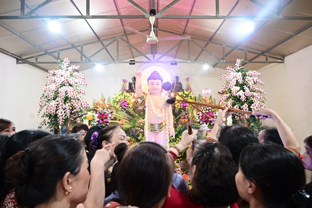 Phật tử tham dự lễ tắm Phật tại chùa Hưng Long