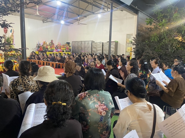 Chư tôn đức và Phật tử tụng kinh ” Bát Chánh Đạo”
