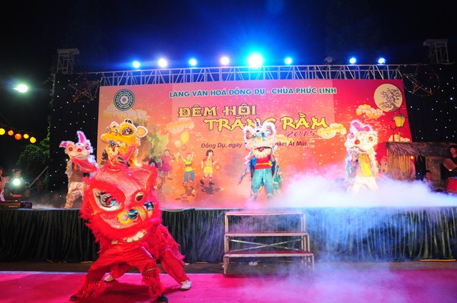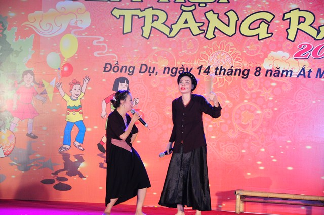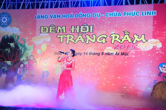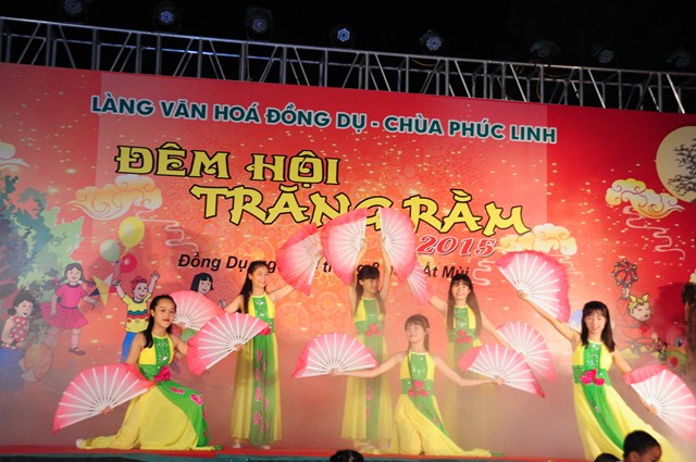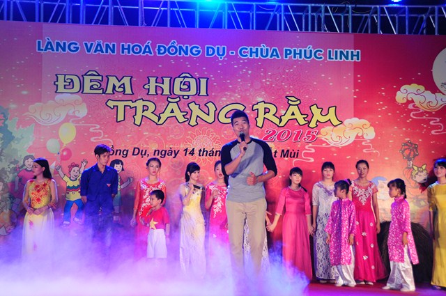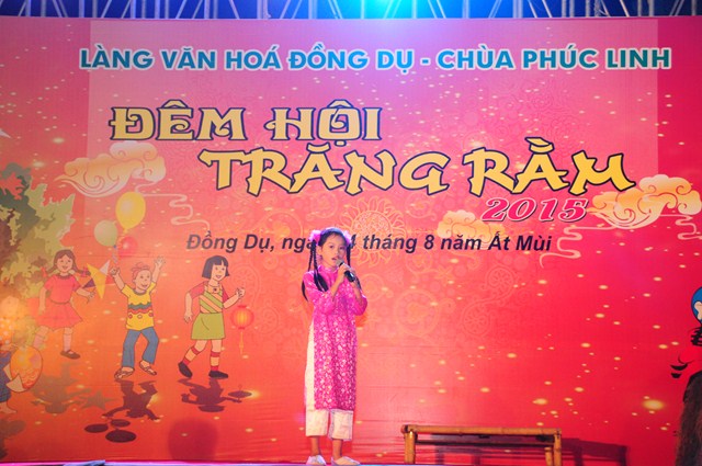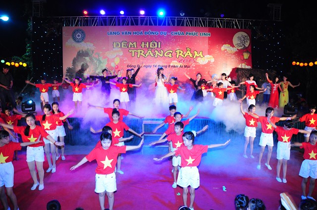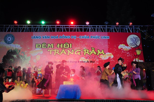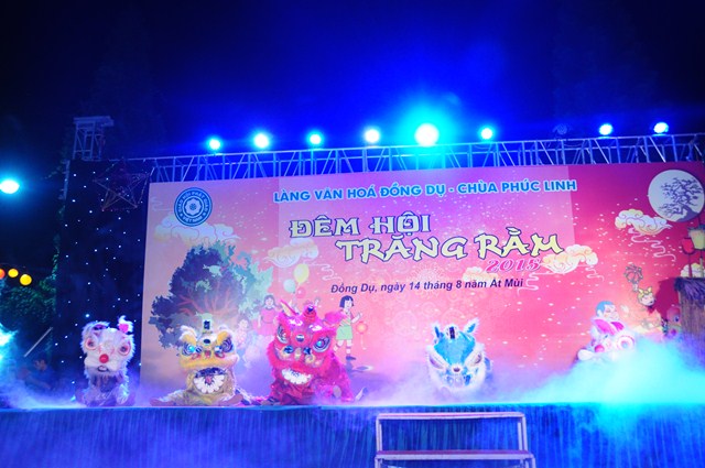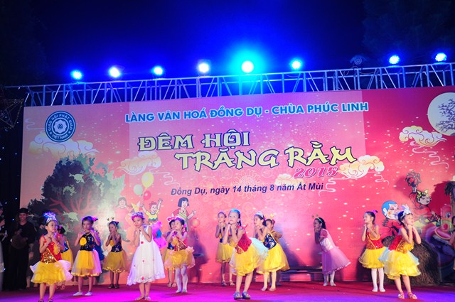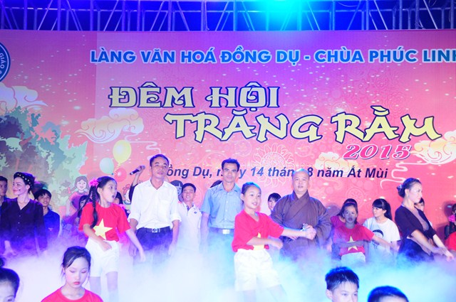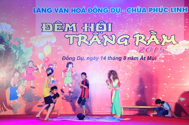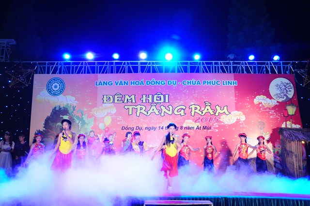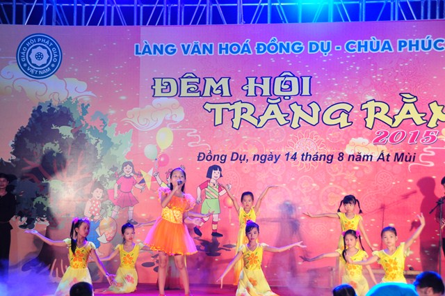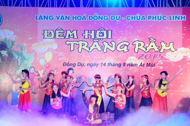Trong đêm hội trăng rằm các em đã được giao lưu với chú Cuội, chị Hằng, xem các tiết mục văn nghệ đặc sắc mang đậm tính dân gian, đậm đà bản sắc dân tộc. Ngoài ra, các em còn được xem tiết mục múa lân do chính các anh chị và các bạn thanh, thiếu niên nhi đồng của làng Đồng Dụ cũng như của huyện tự dàn dựng và trình bày dưới sự chỉ đạo của Đại Đức Thích Bản Hoan. Đặc biệt trong Đêm hội trăng rằm năm nay, còn có sự xuất hiện của 2 vị khách mời là ca sỹ, nhạc sỹ Tạ Quang Thắng đến từ thủ đô Hà Nội và bé Linh Nhi – Giọng hát Việt nhí năm 2015.