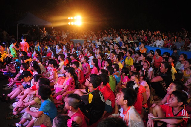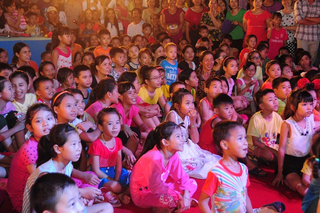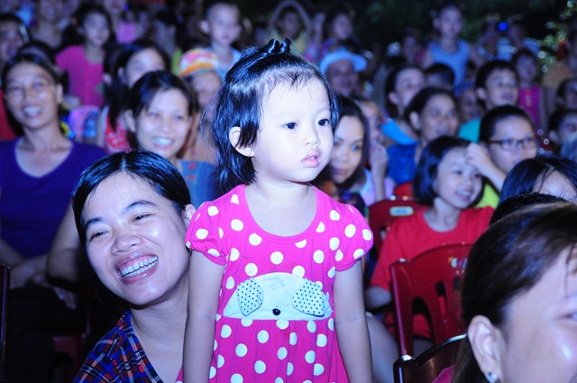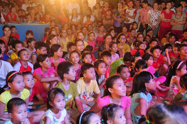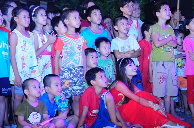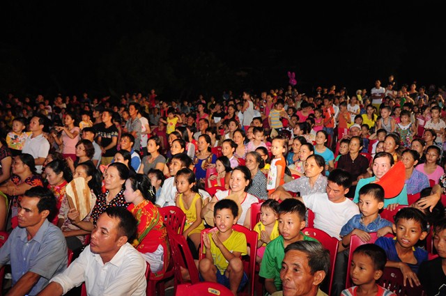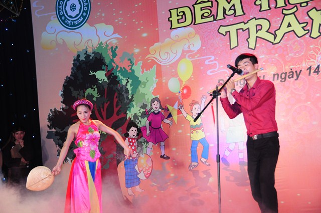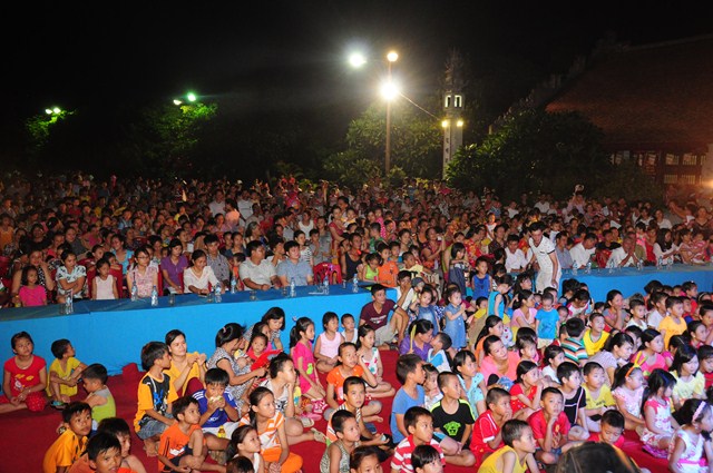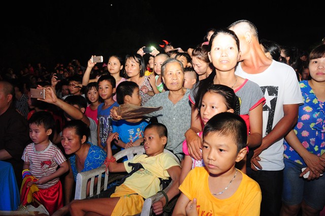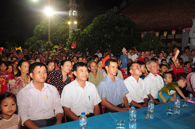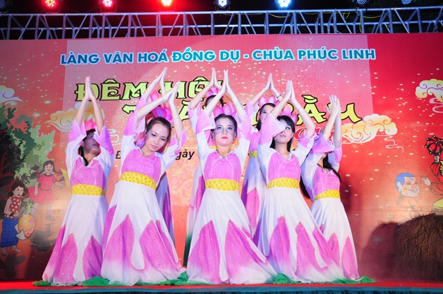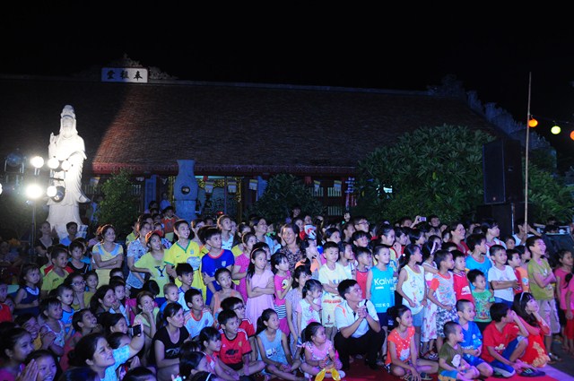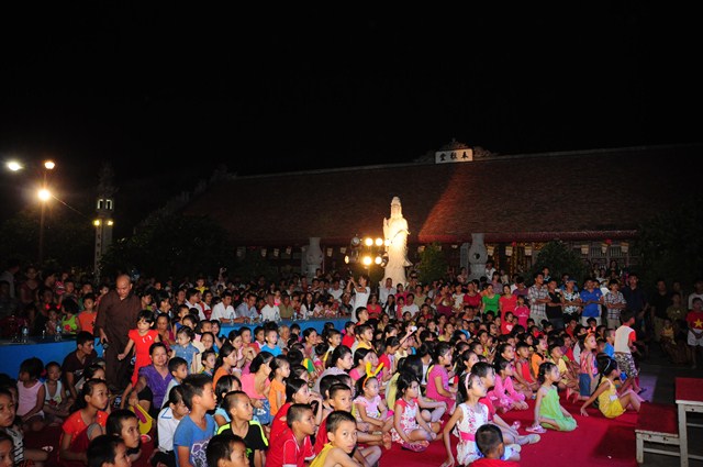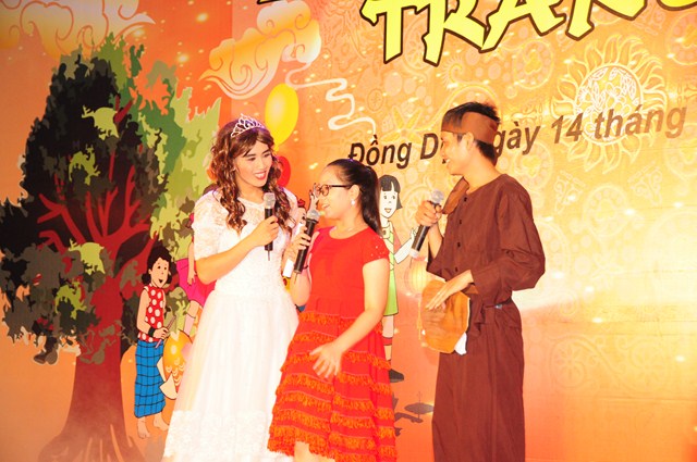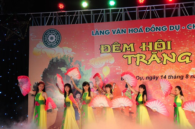 Trong đêm hội trăng rằm các em đã được giao lưu với chú Cuội, chị Hằng, xem các tiết mục văn nghệ đặc sắc mang đậm tính dân gian, đậm đà bản sắc dân tộc. Ngoài ra, các em còn được xem tiết mục múa lân do chính các anh chị và các bạn thanh, thiếu niên nhi đồng của làng Đồng Dụ cũng như của huyện tự dàn dựng và trình bày dưới sự chỉ đạo của Đại Đức Thích Bản Hoan. Đặc biệt trong Đêm hội trăng rằm năm nay, còn có sự xuất hiện của 2 vị khách mời là ca sỹ, nhạc sỹ Tạ Quang Thắng đến từ thủ đô Hà Nội và bé Linh Nhi – Giọng hát Việt nhí năm 2015.