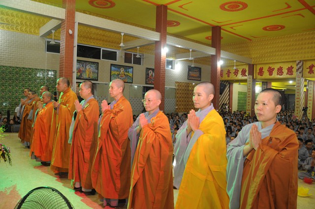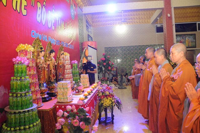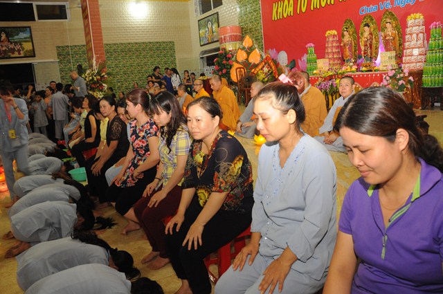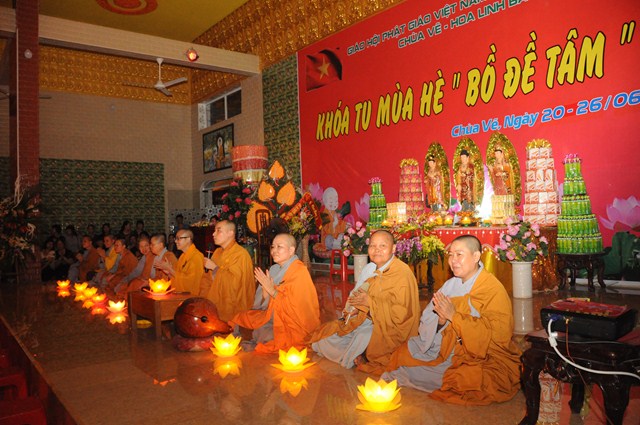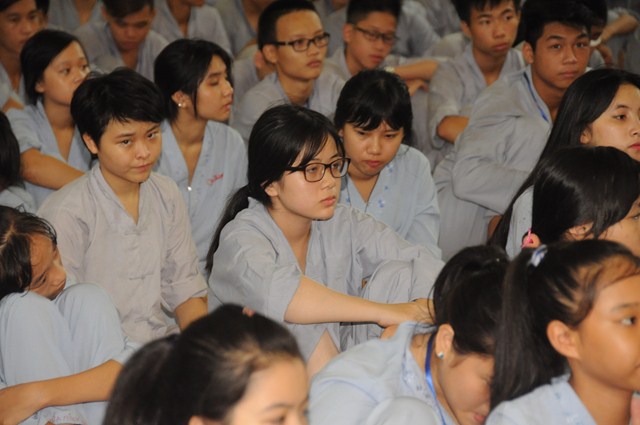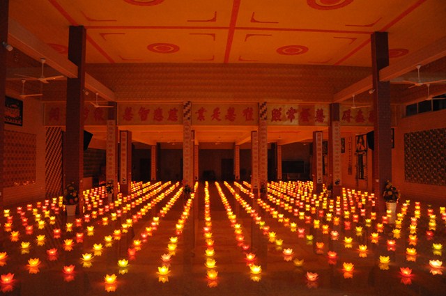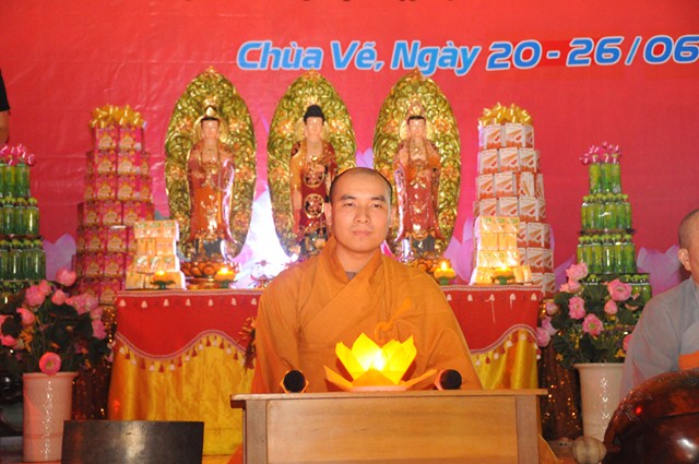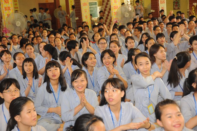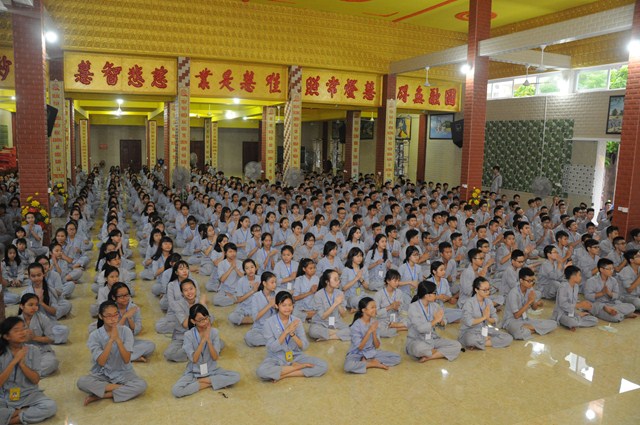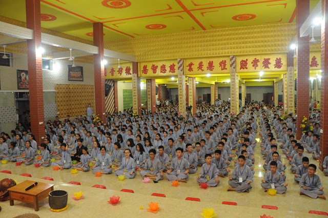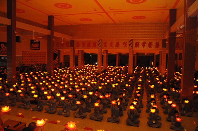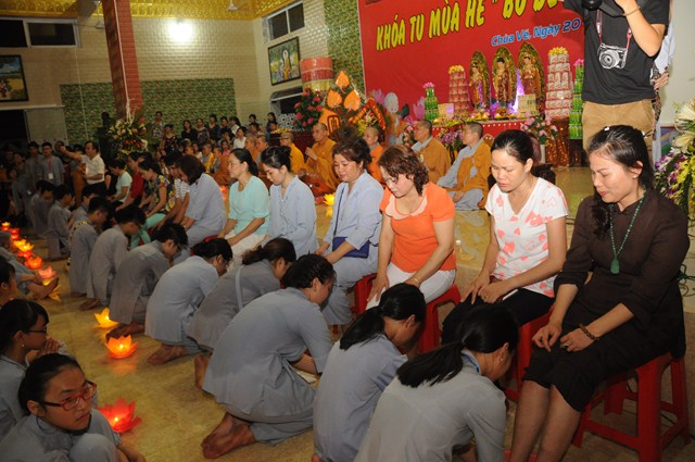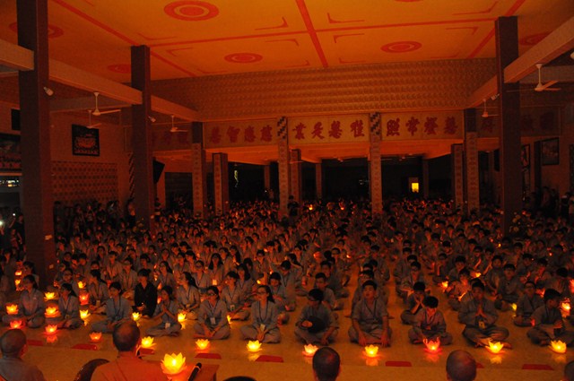 Thời khắc linh thiêng nhất của buổi lễ đã đến khi chư tôn đức đón nhận ánh sáng từ bàn Phật, ánh sáng của Từ Bi và Trí Tuệ để truyền sang cho gần 700 khóa sinh tham dự khóa tu mùa hè năm nay. Từng ngọn hoa đăng đã được thắp sáng khắp cả giảng đường, một không gian lung linh, huyền ảo được hiện ra. Trước mặt các em là những ngọn nến của tình thương và sự hiểu biết. Cầm ngọn nến trên tay, các em đã tự hứa với lòng mình là từ nay sẽ không để cho cha mẹ buồn, sẽ cố gắng học tập tốt để không phụ lòng quý sư thầy, sư cô đã dạy dỗ các em trong những ngày vừa qua cũng như không phụ lòng cha mẹ đã không quản ngại gian nan, vất vả, nuôi dạy các em để các em có được thân hình, vóc dáng như ngày hôm nay. Rất nhiều giọt nước mắt đã rơi khi các em tự thấy bản thân mình có lỗi với cha mẹ. Ban tổ chức khóa tu cũng hy vọng khi về nhà các em sẽ thay đổi cách sống và suy nghĩ của mình, trở thành những con người tốt, có ích cho xã hội.