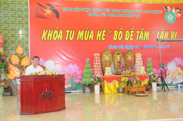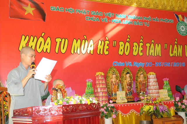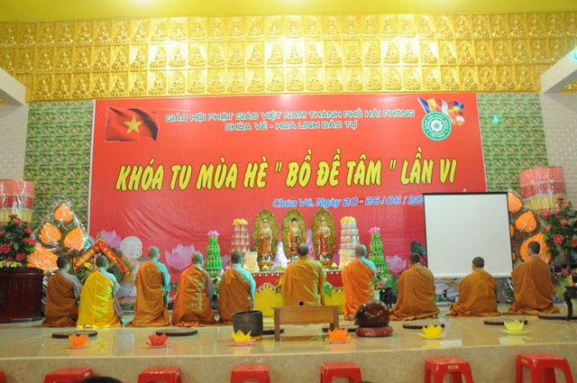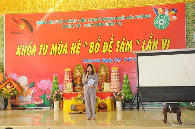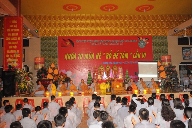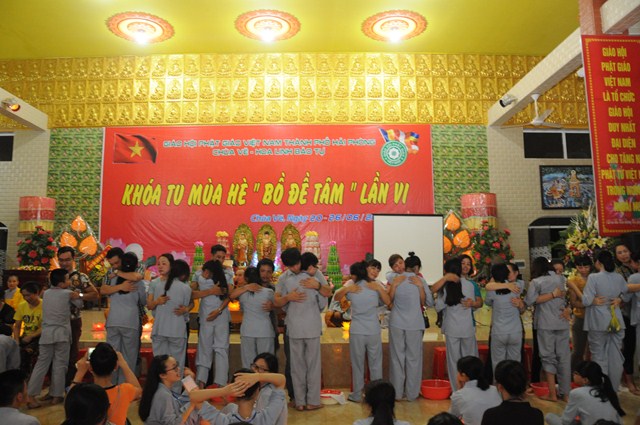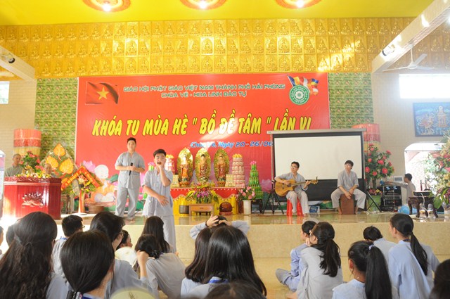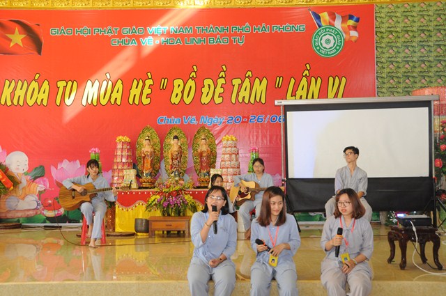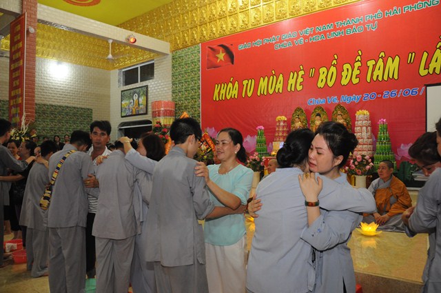 Ấn tượng hơn nữa trong đêm thứ 6 của khóa tu mùa hè Bồ Đề Tâm năm nay là chương trình thắp nến tri ân cha mẹ. Chương trình được cung đón Ni Sư Thích Tâm Chính – Trụ trì chùa Vẽ, trưởng BTC khóa tu mùa hè Bồ Đề Tâm lần thứ 6 cùng các sư thầy, sư cô hướng dẫn khóa tu, chư tôn đức BTS GHPGVN thành phố Hải Phòng, cùng các vị phụ huynh của các em khóa sinh và gần 700 em khóa sinh tham dự khóa tu mùa hè năm nay.