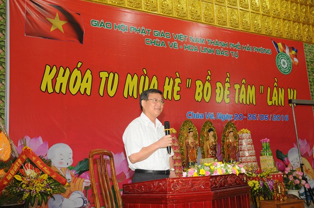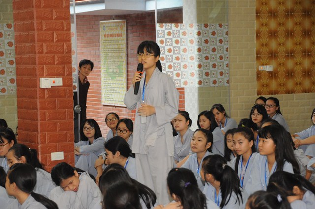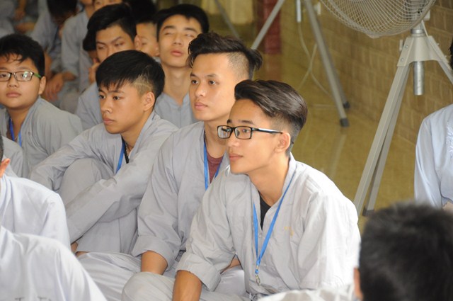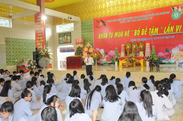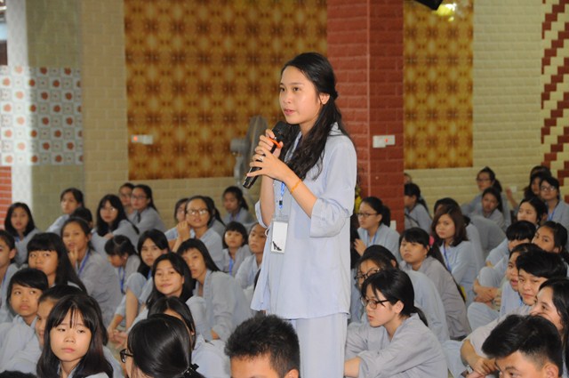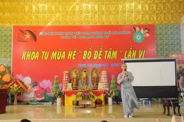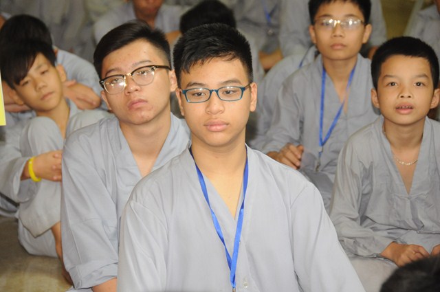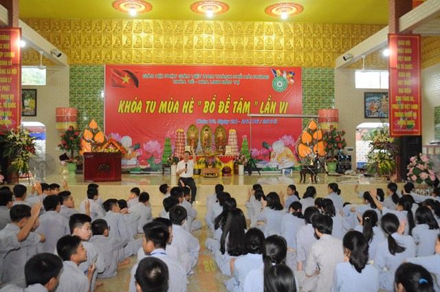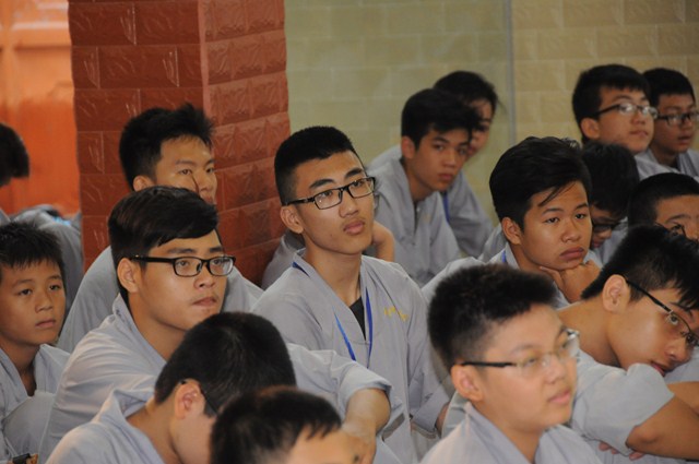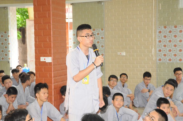 Buổi sáng hôm nay, các em đã được nghe Bác Bùi Hữu Dược – Vụ trưởng vụ Phật giáo, Ban tôn giáo Chính Phủ chia sẻ về đề tài: “ Làm sạch thân tâm của mình khi tới khóa tu mùa hè”. Trước hết, Bác đã giải thích cho tất cả các bạn trẻ tham dự khóa tu mùa hè hiểu như thế nào là thân? Và như thế nào là Tâm? Tâm là gì? Bởi trong mỗi con người của chúng ta luôn tồn tại 2 phần đó là phần THÂN và phần TÂM. Chúng ta muốn trở thành một người tốt thì trước nhất chúng ta cần phải gột rửa cả 2 phần đó. Nếu chỉ gột rửa 1 phần Tâm thôi cũng không được mà gột rửa phần Thân thôi thì cũng không xong. Vì vậy nên chúng ta cần phải gột rửa cả 2 phần đó trong mỗi con người bằng cách tu học, sửa chữa thân và tâm của mình sao cho thân và tâm đều được trong sạch. Tất cả các em khóa sinh đến tham dự khóa tu mùa hè chính là để các em rèn luyện và sửa chữa cả 2 phần đó, để các em trở thành những người có cái Thân và cái Tâm khỏe mạnh, trong sáng. Sau này khi ra ngoài đời sẽ trở thành những con người có Đức, có Tài để cống hiến cho xã hội, cho Đất nước.