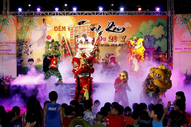 Đến với đêm hội trăng rằm, các em thiếu niên nhi đồng, các bậc phụ huynh đã được xem màn múa Lân đặc sắc của đội Lân “ Hỏa Lân Đường” thuộc làng Đồng Dụ, được gặp chú Cuội, chị Hằng, được xem các tiết mục múa rồi của các cô chú đoàn múa rối Hải Phòng, tiểu phẩm về sự tích Chú Cuội, cùng với đó là các tiết mục ca múa hát đặc sắc, ấn tượng với quy mô lớn nhất từ trước tới nay.