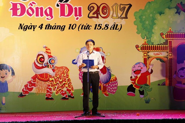Trước khi chính thức diễn ra các chương trình văn nghệ đặc sắc của ” Đêm Hội Trăng Rằm Đồng Dụ 2017”, ông: Phạm Văn Thiết- Phó chủ tịch UBND xã Đặng Cương lên phát biểu khai mạc. Trong bài phát biểu của mình, ông đã nhấn mạnh tầm quan trọng của Phật giáo đối với sự phát triển của xã hội bởi Phật giáo luôn đồng hành cùng Dân tộc. Việc Đại đức Thích Bản Hoan phối kết hợp với chính quyền địa phương tổ chức trung thu cho các cháu thiếu niên, nhi đồng trên toàn xã là một việc làm hết sức thiết thực và cần thiết, đưa các cháu thiếu niên nhi đồng đến gần hơn với những điều thiện lành, giáo dục cho các cháu về tình yêu quê hương Đất Nước thông qua các tiết mục văn nghệ mang đậm nét văn hóa dân gian của các miền quê Việt Nam.