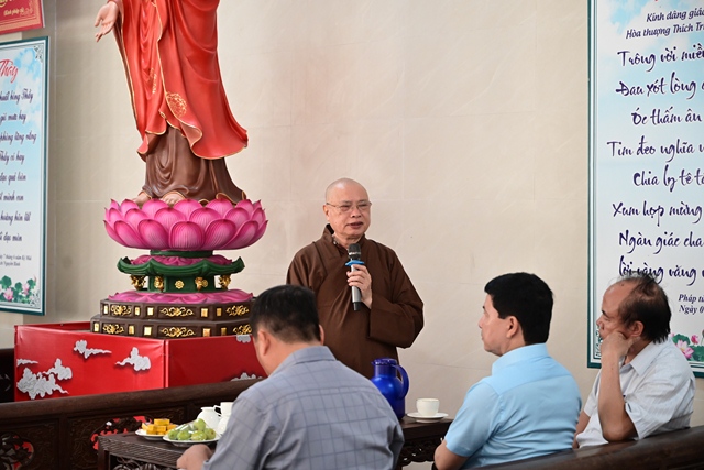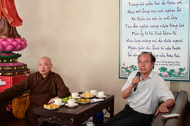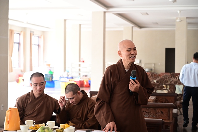 Đại đức Thích Giác Huy đóng góp ý kiến cho phóng sự chùa Long Hoa