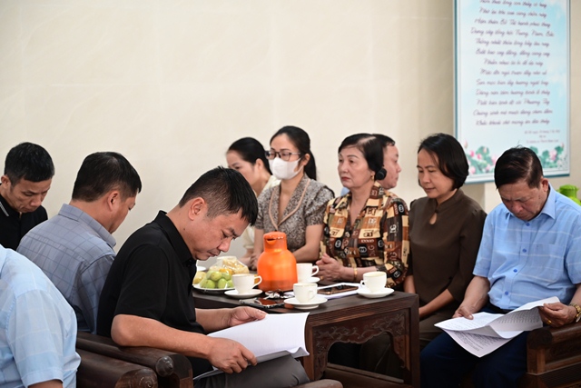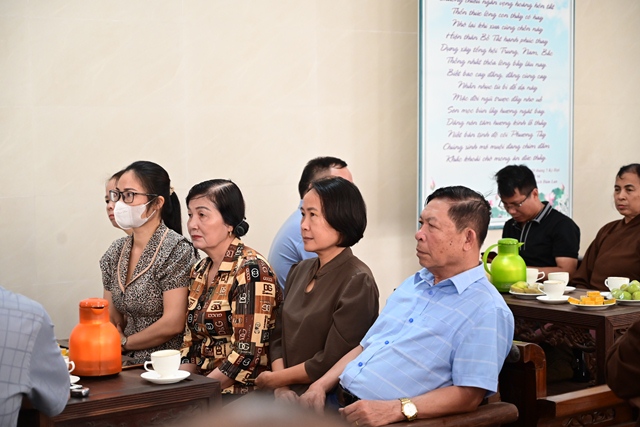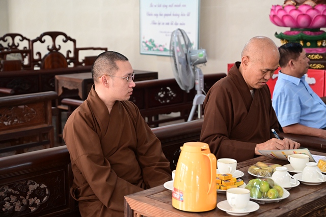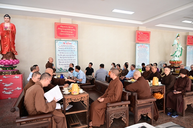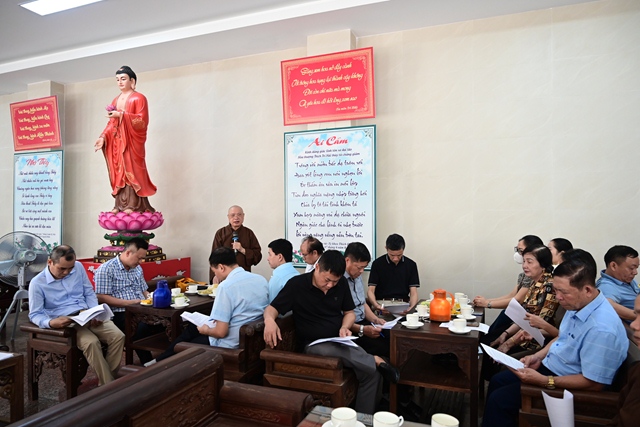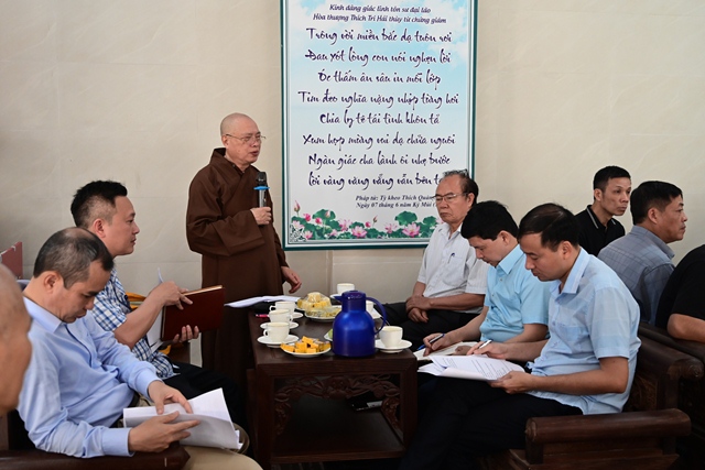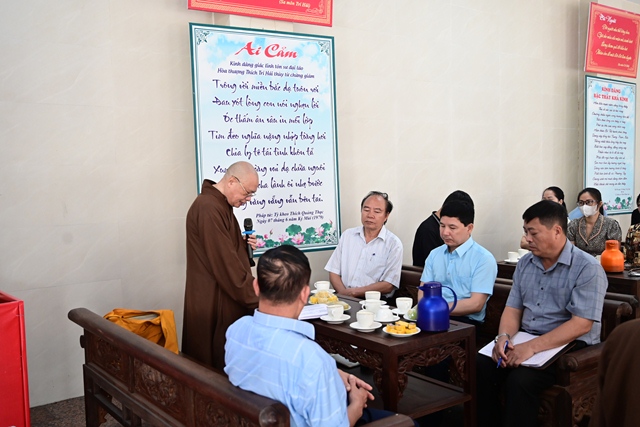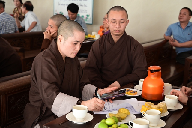 Đại diện Đài phát thanh và Truyền hình Hải Phòng nghe Hòa thượng trưởng BTC đóng góp ý kiến về phóng sự