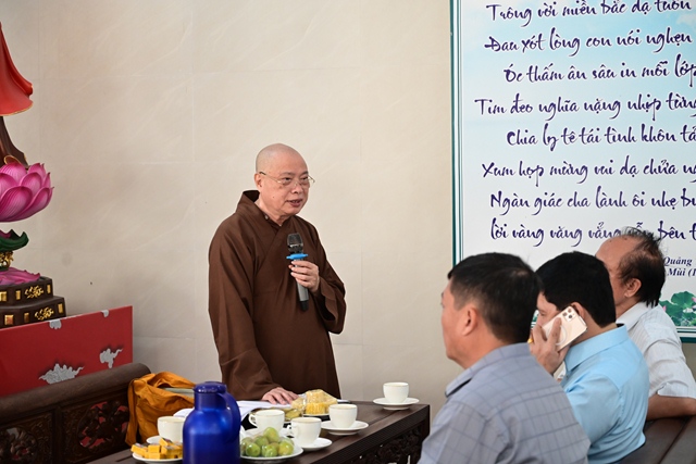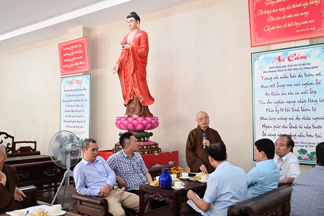 Đại đức Thích Giác Huy đóng góp ý kiến cho phóng sự chùa Long Hoa
