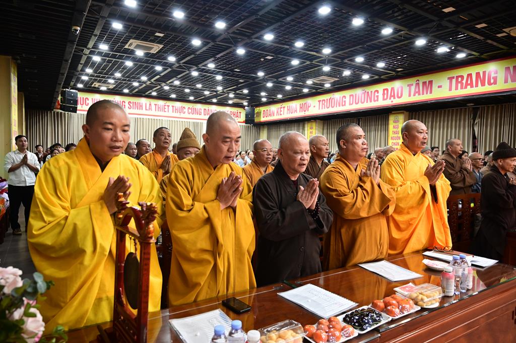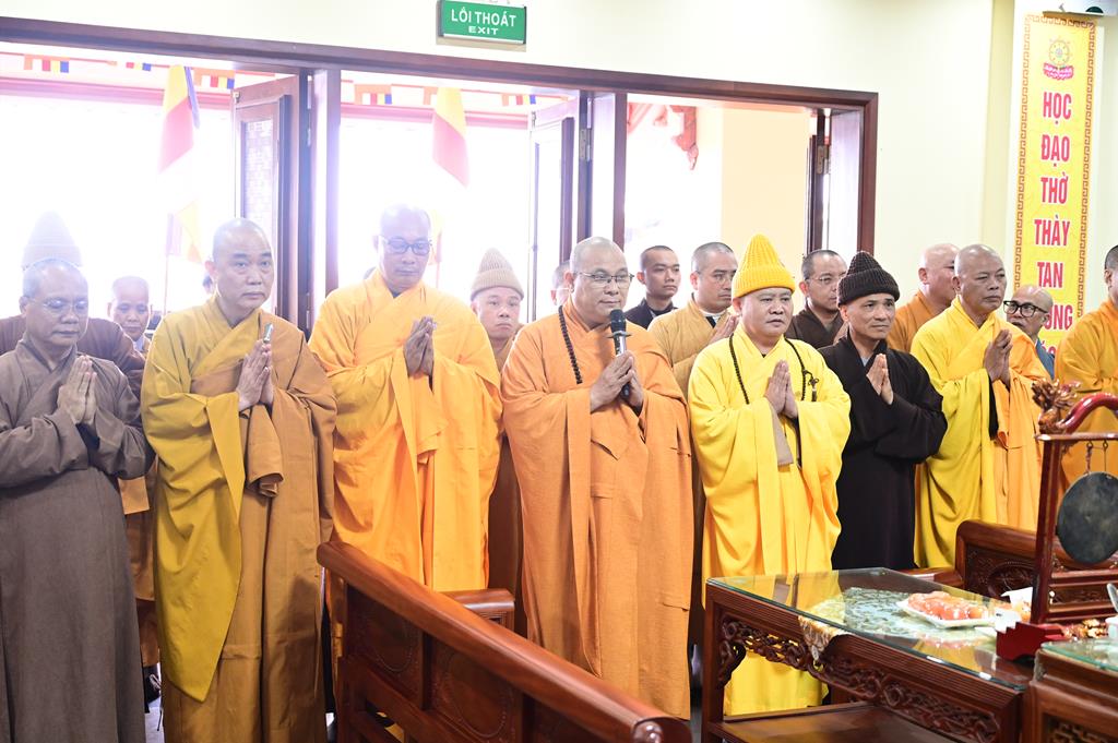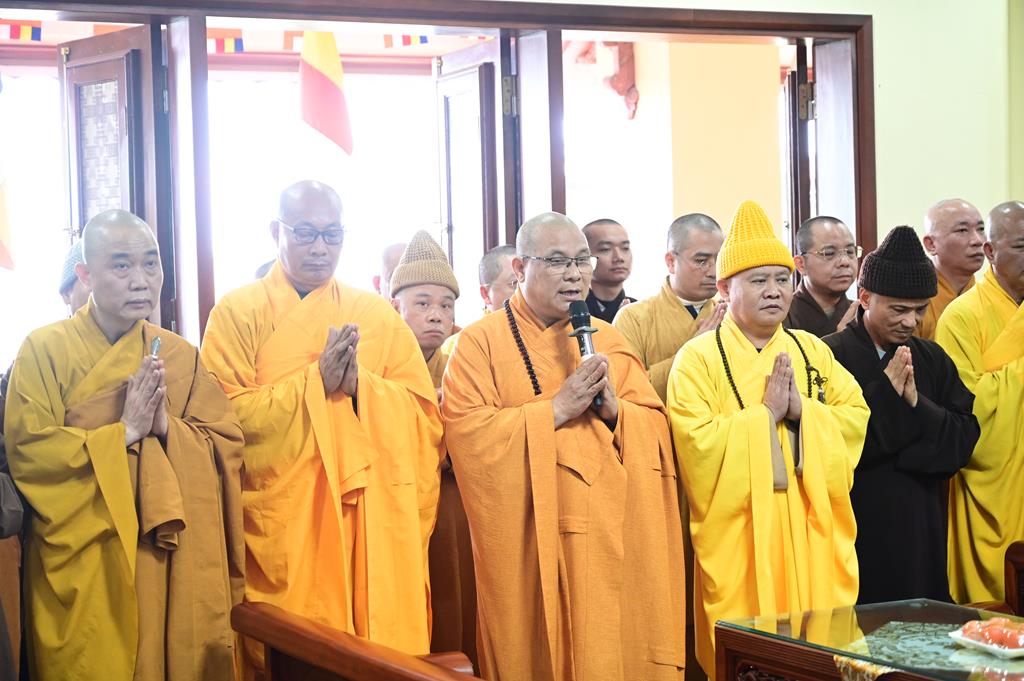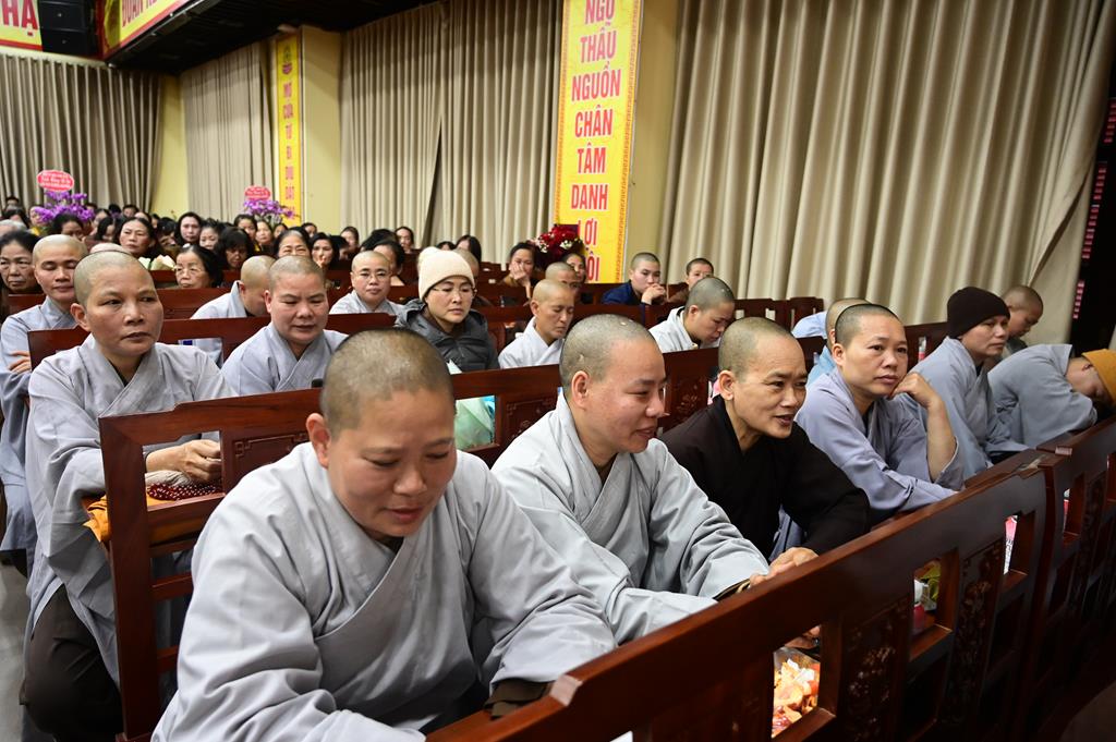 Chư tôn đức thành kính đón nghe Quyết định tấn phong giáo phẩm của HĐCM GHPGVN
