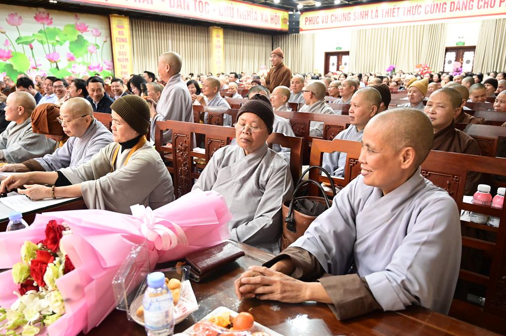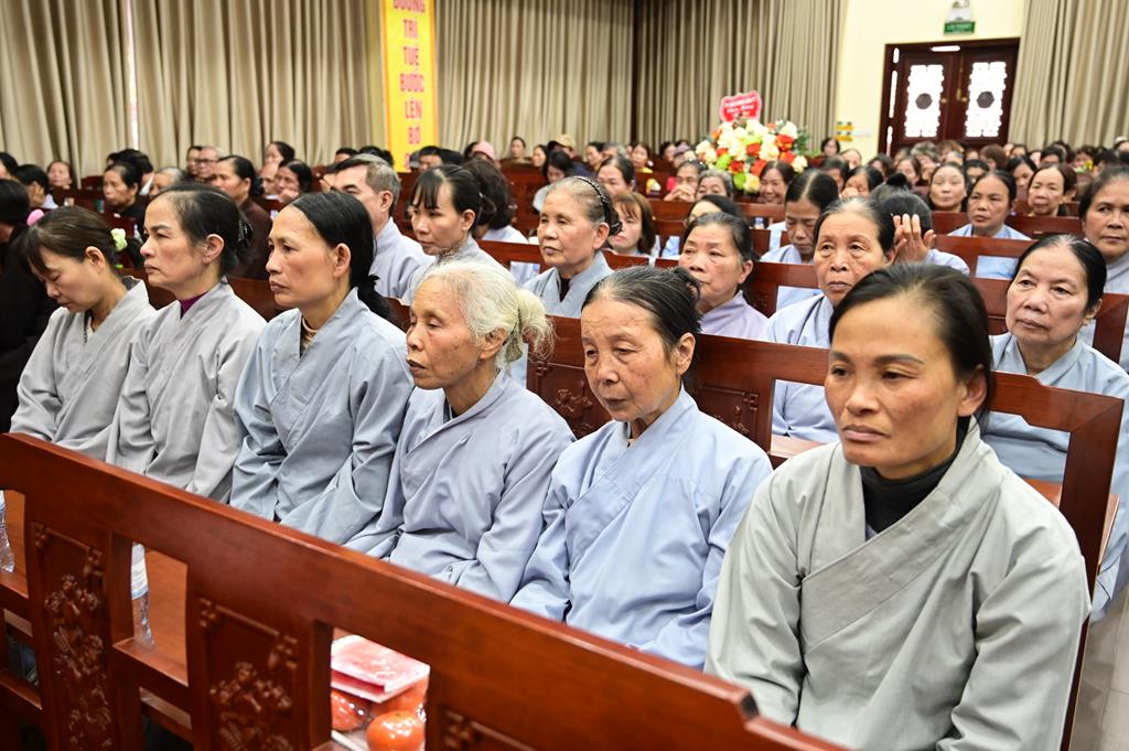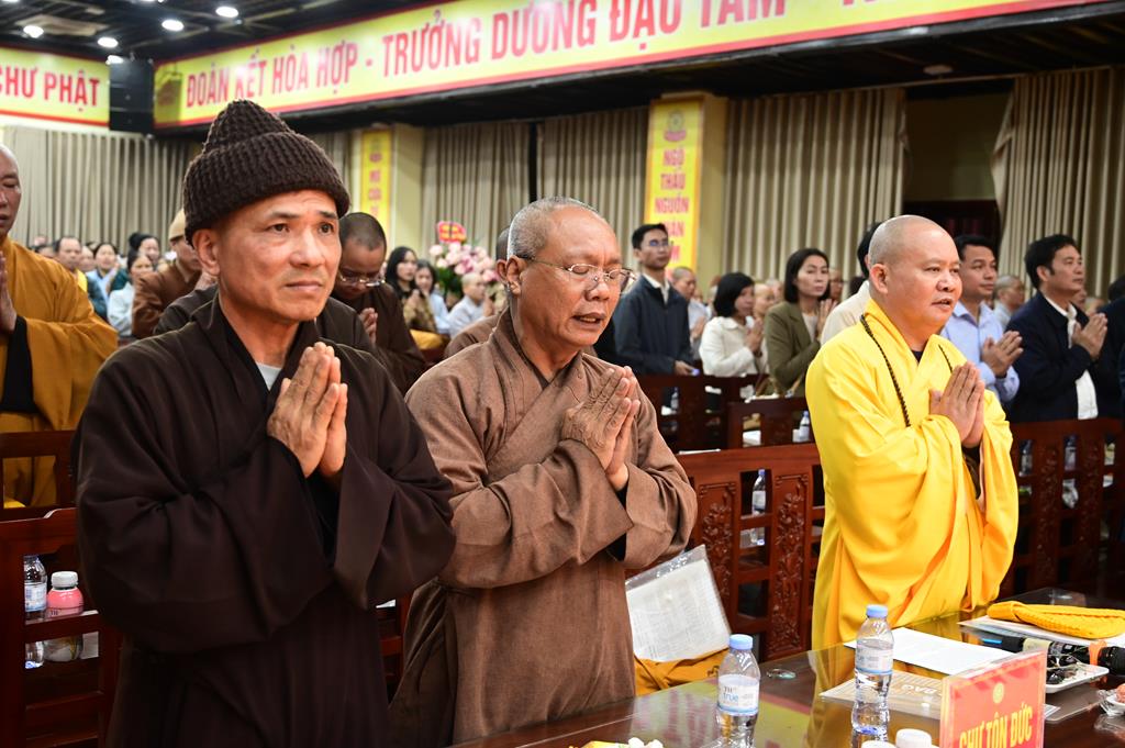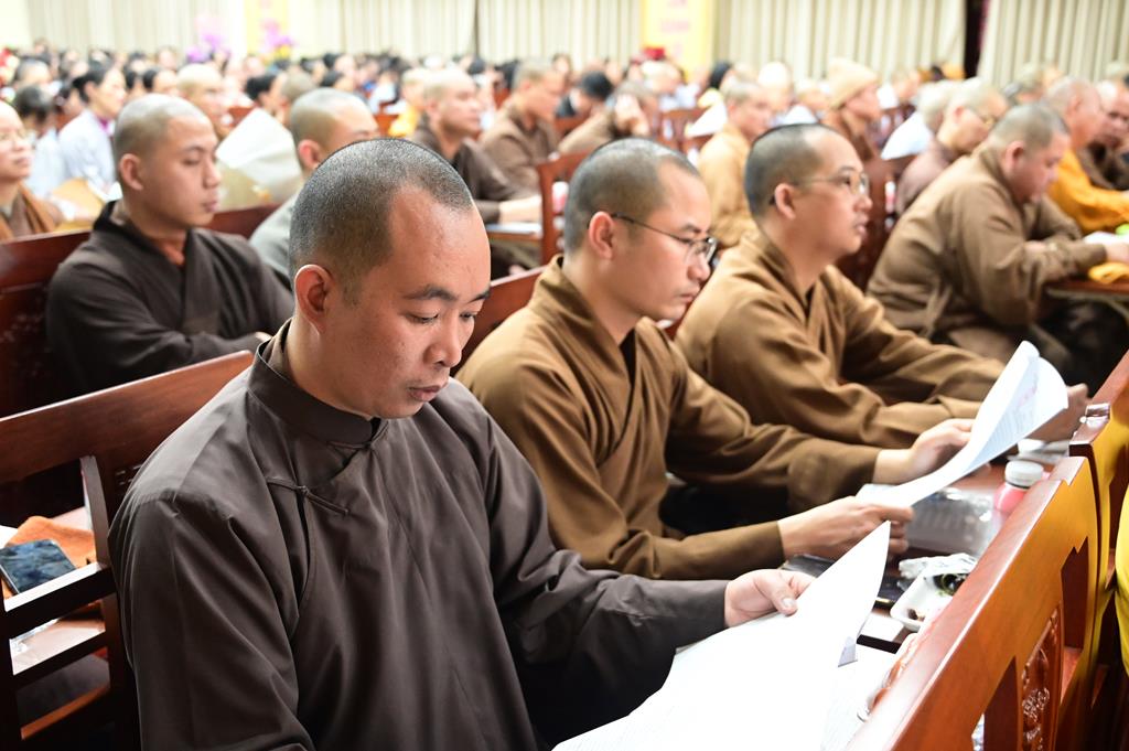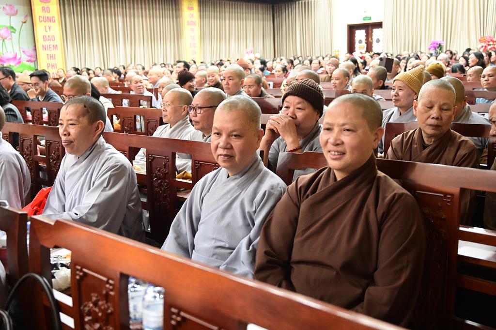Chư tôn đức thành kính đón nghe Quyết định tấn phong giáo phẩm của HĐCM GHPGVN