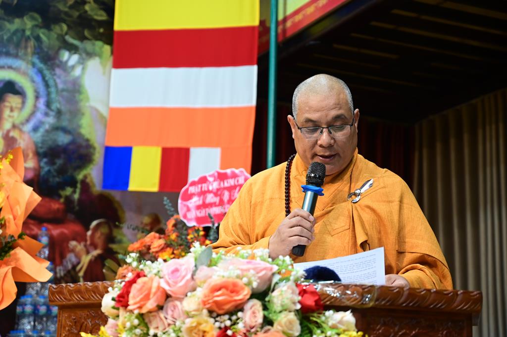 Hòa thượng Thích Quảng Tùng, Phó Chủ tịch HĐTS GHPGVN, trưởng ban Ban trị sự GHPGVN thành phố phát biểu khai mạc Hội nghị