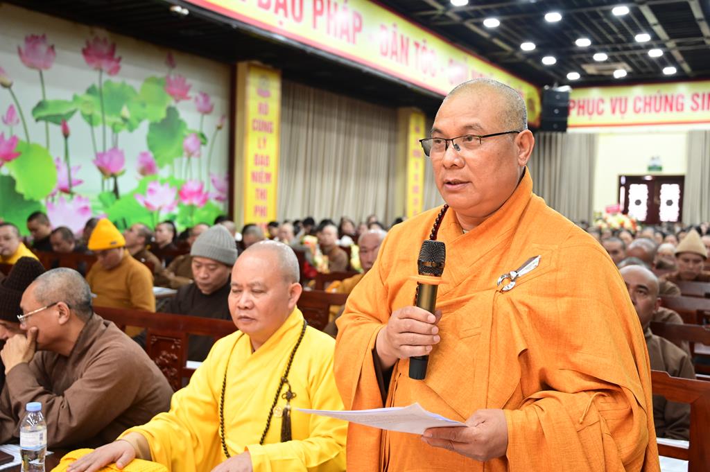 Thượng tọa Thích Thanh Thắng, phó trưởng BTS GHPGVN thành phố phát biểu ý kiến