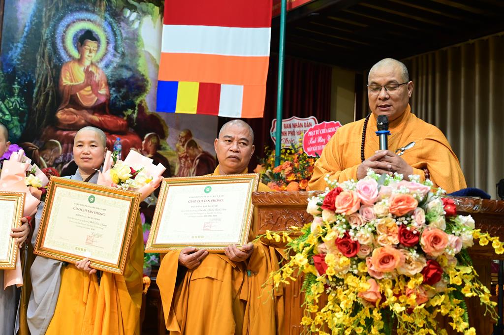 Hòa thượng Thích Thanh Vân, Phó trưởng ban thường trực BTS GHPGVN thành phố tuyên đọc Nghị quyết Hội nghị kỳ 5, khóa IX Hội đồng trị sự GHPGVN