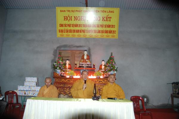 Phát biểu tại hội nghị, Đại đức Thích Quảng Minh đánh giá chung trong công tác tổ chức và hoạt động trong năm 2012 của Phật giáo Huyện, nhờ sự đồng lòng của chư Tăng, Ni, Phật tử nên các công tác Phật sự xã hội đã được thành tựu viên mãn, góp phần vào công tác Phật sự trong năm 2012 của Phật giáo toàn Thành phố Hải Phòng.
