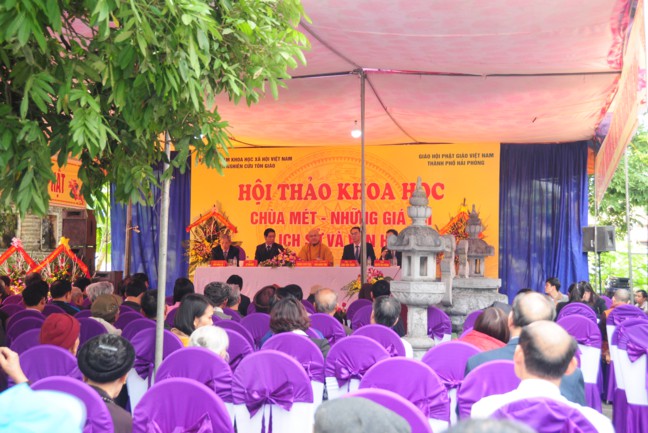 Tham dự buổi Hội thảo Chùa Mét – Những giá trị lịch sử văn hóa có sự hiện diện của HT. Thích Quảng Tùng – Phó chủ tịch HĐTS TƯ GHPGVN, trưởng Ban trị sự GHPGVN thành phố Hải Phòng; ông: Nguyễn Tràng Thành – Phó chủ tịch UB MTTQVN Tp. Hải Phòng; TT. Thích Thanh Giác – Phó ban thường trực BTS GHPGVN Tp. Hải Phòng, trưởng BTS GHPGVN huyện Vĩnh Bảo; ông: Lê Văn Nhã – Phó giám đốc Sở Nội Vụ, trưởng Ban tôn giáo thành phố Hải Phòng; tiến sỹ Hoàng Văn Kể – Nguyên phó chủ tịch UBND Tp. Hải Phòng, chủ tịch Hội liên hiệp các hội khoa học thành phố; PGS.TS Chu Văn Tuấn – Phó viện trưởng viện nghiên cứu tôn giáo; nhà sử học Ngô Đăng Lợi cùng các giáo sư, phó giáo sư, tiến sỹ đầu ngành về lĩnh vực khoa học lịch sử, tôn giáo, đại diện các sở, ban ngành thành phố, đại diện chính quyền, MTTQ huyện Vĩnh Bảo, xã Cổ Am và nhân dân, Phật tử địa phương, các cơ quan thông tấn báo chí.