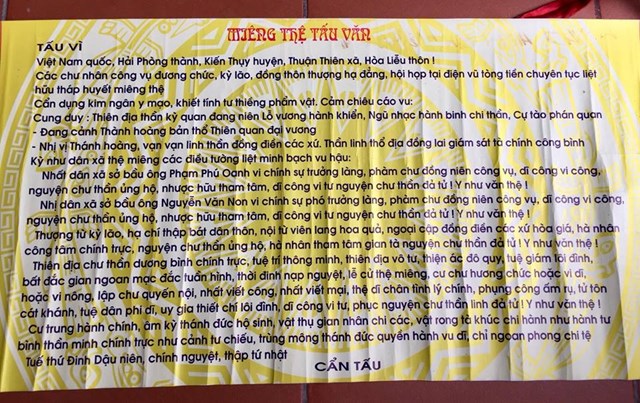 Tại buổi hội thảo, Tiến sỹ: Hoàng Văn Kể – Nguyên chủ tịch UBND thành phố Hải Phòng, chủ tịch liên hiệp các hội khoa học kỹ thuật Hải Phòng thay mặt cho đoàn chủ tọa đã lên phát biểu khai mạc. Với giá trị đặc sắc và độc đáo của hội Minh Thệ hay thường gọi là hội Minh Thề thuộc thôn Hòa Liễu, xã Thuận Thiên, huyện Kiến Thụy, ngày 8/5/2017, bộ trưởng Bộ văn hóa thể thao và du lịch dã ký bản chứng nhận Hội Minh Thệ được đưa vào danh mục Di sản văn hóa phi vật thể Quốc gia. Đây là niềm tự hào của thành phố Hải Phòng nói chung và người dân huyện Kiến Thụy nói riêng. Dự kiến vào lễ hội năm 2018, ban quản lý di tích sẽ được đón nhận giấy chứng nhận Lễ Hội Minh Thệ là di sản văn hóa phi vật thể cấp Quốc gia.