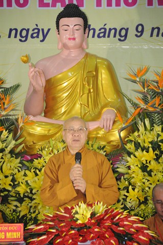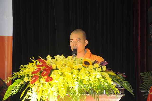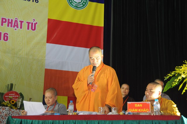 Sau nghi thức niệm Phật cầu gia bị, chào Quốc kỳ, Đạo kỳ, một phút nhập từ bi quán tưởng nhớ tới các vị anh hùng dân tộc, các anh hùng, liệt sĩ, thay mặt cho BTC hội thi, TT.Thích Thanh Giác – Trưởng Ban tổ chức hội thi đã lên phát biểu khai mạc Hội thi giáo lý Phật pháp phổ thông cho các cư sĩ, phật tử cấp thành phố lần thứ IV năm 2016.
