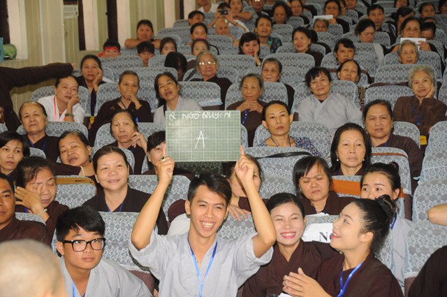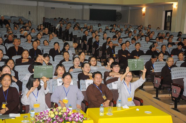Trong đó thượng tọa đã nên lên tầm quan trọng của Hội thi giáo lý, nhằm giúp cho nam nữ cư sỹ hiểu được giáo lý Phật đà và thông qua đó áp dụng những giáo lý đó vào cuộc sống để từ đó mỗi phật tử phải tự trau dồi thân tâm của mình, thực hành theo đúng lời Phật dạy với mục đích hướng tới một cuộc sống tốt đẹp, an lạc trong đời sống hiện tại. Hội thi giáo lý cho nam nữ cư sỹ Phật tử cấp thành phố năm nay có một điểm rất khác biệt so với Hội thi giáo lý cấp thành phố những năm trước. Đó là Ban tổ chức hội thi đã chia đối tượng dự thi theo hai lứa tuổi khác nhau. Đối tượng thứ nhất là các Phật tử lớn tuổi sẽ thi trước và đối tượng là các thanh thiếu niên Phật tử sẽ thi sau với các câu hỏi dành cho 2 đối tượng có mức độ khó dễ khác nhau phù hợp với từng lứa tuổi.