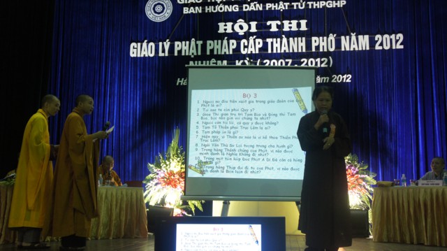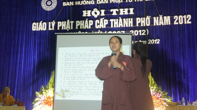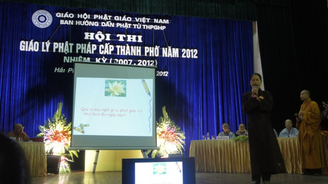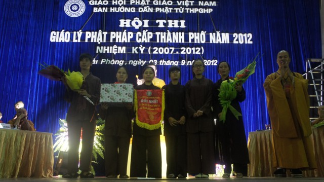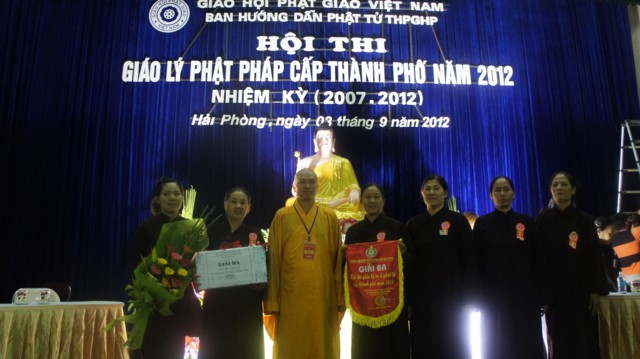 Sau khi vượt qua vòng loại của các cuộc thi giáo lý cấp quận, huyện. Sáng ngày 3 tháng 09 năm 2012, các Phật tử đại diện cho các quận huyện trên địa bàn Hải Phòng đã quy tụ về Nhà văn hóa Hồ Sen, quận Lê Chân, TP. Hải Phòng để tham dự Hội thi giáo lý cấp thành phố năm 2012.