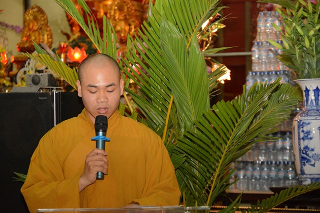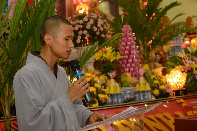 Tiếp đó, Sư chú Thích Long Bảo – Chư tăng chùa An Hồng đã lên tuyên đọc Diễn văn Phật đản PL.2561 – DL. 2017 của Hòa thượng Thích Thiện Nhơn – Chủ tịch HĐTS TƯ GHPGVN.