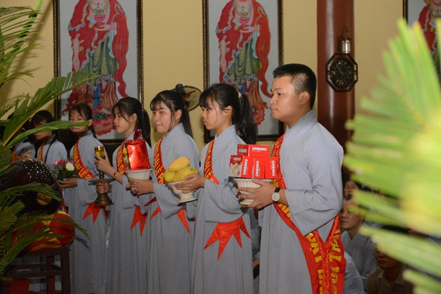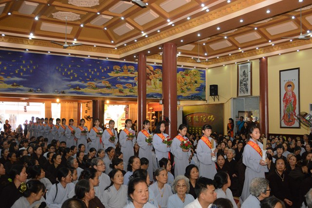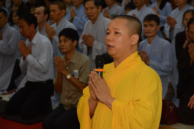 Buổi chiều cùng ngày, ĐĐ. Thích Giác Hảo đã làm lễ quy y Tam Bảo và lễ truyền ngũ giới cho khoàng 300 tín đồ phát tâm quy y nhân sự kiện trọng đại này.