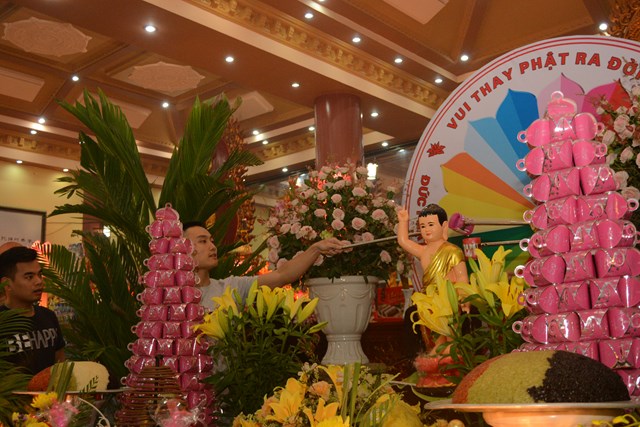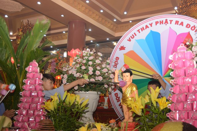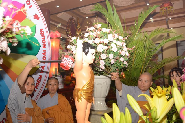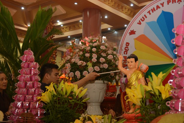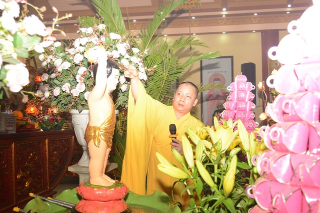 Trước khi kết thúc chương trình, chư tôn đức Tăng Ni và gần 1000 Phật tử về tham dự đại lễ Phật đản đã cử hành nghi lễ mộc dục ( lễ tắm Phật) trong niềm hân hoan kỷ niệm 2641 năm ngày Đức Phật Thích Ca Mâu Ni đản sinh.