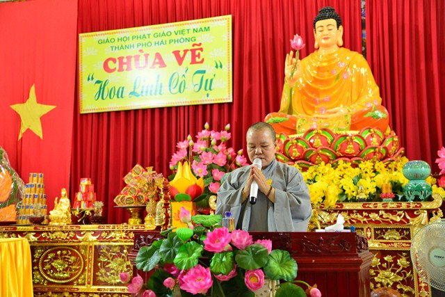 Trước khi chính thức đang đàn Quy Y Tam Bảo cho hơn 600 bạn trẻ.  Ni Sư Thích Tâm Chính – Ủy viên thường trực Ban hoằng pháp TƯ GHPGVN, Trưởng ban Từ thiện – xã hội GHPGVN TP.Hải Phòng, trưởng BTS GHPGVN Quận Hải An, trưởng BTC Khóa tu mùa hè “ Bồ Đề Tâm” lần thứ IX, trụ trì chùa Vẽ ( Hoa Linh Cổ Tự) đã giảng cho các bạn trẻ hiểu Quy Y Tam Bảo là gì?  Ý nghĩa và lợi ích của việc Quy Y Tam Bảo. Bên cạnh đó, Ni sư cũng giảng về ngũ giới của người Phật tử tại gia cho các bạn nắm rõ và mong muốn các bạn trẻ có mặt tại khóa tu mùa hè lần này phát nguyện thụ trì ngũ giới, giữ gìn năm giới của người Phật tử tại gia, hướng đến Chân – Thiện – Mỹ, hướng tới một cuộc sống an lạc và hạnh phúc.