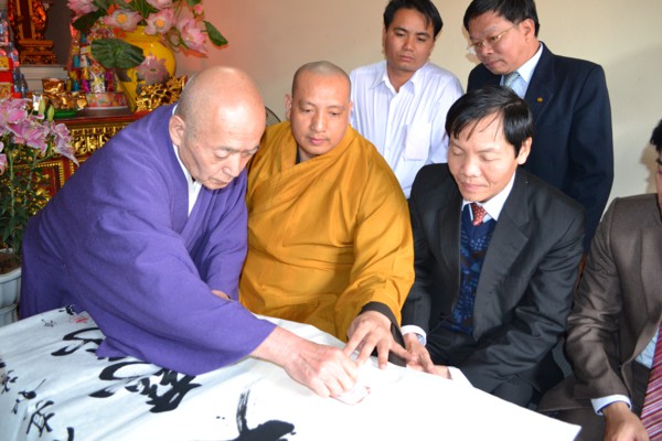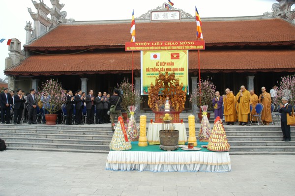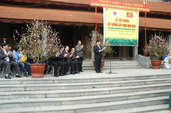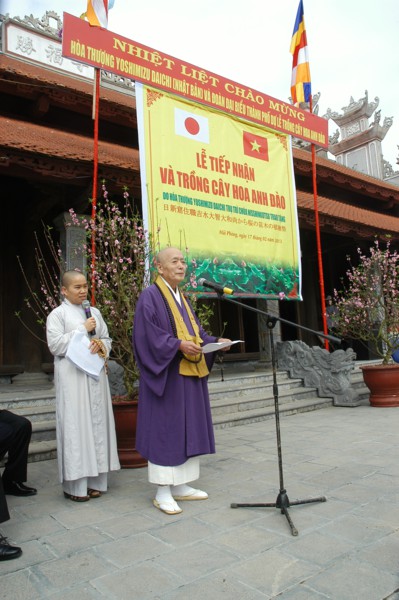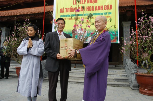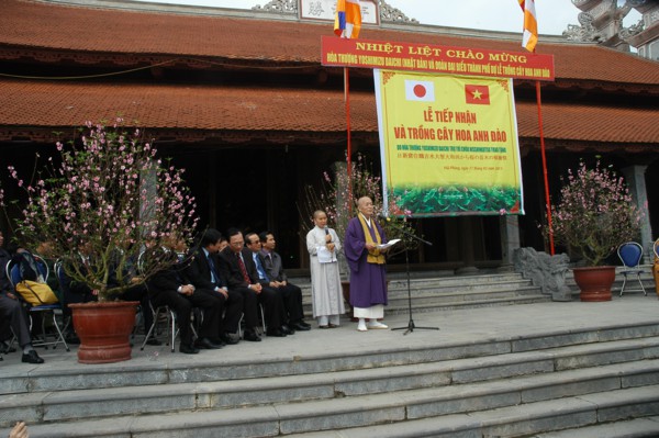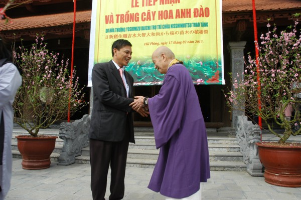 Tiếp theo đó là lễ bàn giao 20 cây hoa anh đào do HT. YOSHIMIZU DAICHI trụ trì chùa Nisshinkutsu – Nhật Bản trao cho chùa Thắng Phúc Huyện Tiên Lãng. Trong bài phát biểu, HT. YOSHIMIZU DAICHI trụ trì chùa Nisshinkutsu – Nhật Bản mong muốn mối quan hệ giữa Chính phủ Việt Nam và chính Phủ Nhật Bản cũng như mối quan hệ giữa Giáo hội PG Nhật Bản và GHPG Việt Nam ngày càng phát triển tốt đẹp hơn nữa.