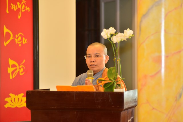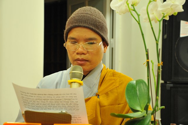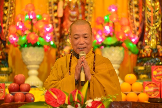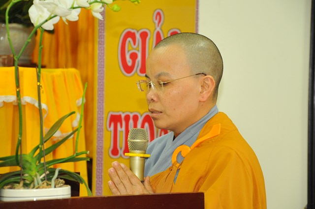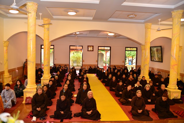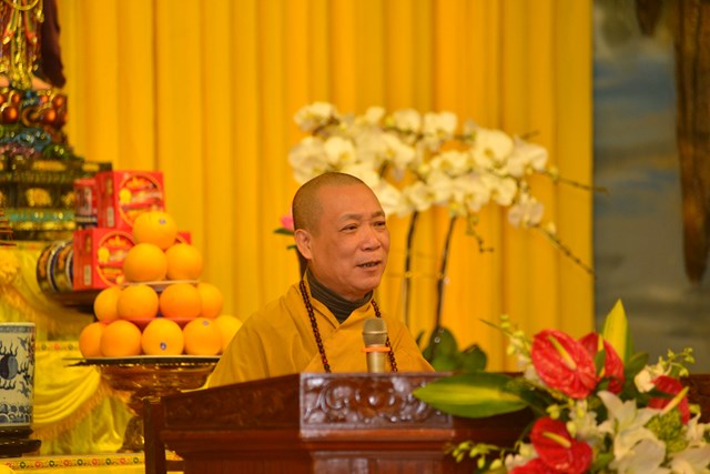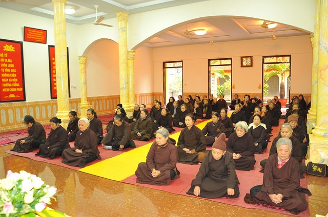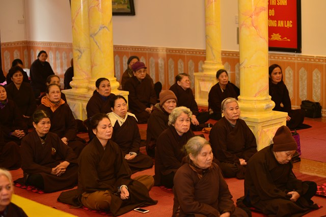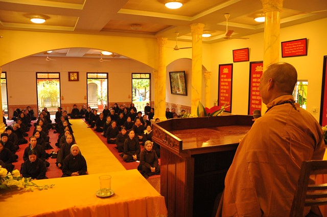 Nhân dịp này, Hòa thượng đã nhắc lại cho đại chúng về đạo hạnh của cố ni trưởng Thích Diệu Tâm “một vị ni trưởng lớn, đạo hạnh và suốt đời tận tụy cho Giáo hội, cho Phật pháp, phục vụ nhân sinh, người sống được nhờ, người chết được yên phần mồ. Đó là công đức của cố ni trưởng Thích Diệu Tâm rất lớn. Bên cạnh đó, cố Ni trưởng chăm lo cho đời sống tu tập của Phật tử mà hôm nay chúng tôi thấy rất hoan hỷ, đó là việc cố Ni trưởng đã tổ chức được 8 khóa tu niệm Phật. Cứ mỗi một năm, về mùa khánh đản Đức Phật A Di Đà, người lại tổ chức khóa tu niệm Phật 7 ngày cho các Phật tử. Tuy rằng số lượng không đông, nhưng ngồi đây tôi thấy gần 100 vị nét mặt trang nghiêm, toát lên vẻ thanh cao tâm hồn giải thoát của một người được tu Phật, vượt qua chướng duyên mỏi mệt của thân tứ đại tuổi già, đặc biệt trong tiết trời lạnh mưa giá rét của ngày đông hôm nay, các Phật tử vẫn trang nghiêm ngồi tu tập này, cho nên tôi thấy rất ấm lòng ở buổi giảng hôm nay”.