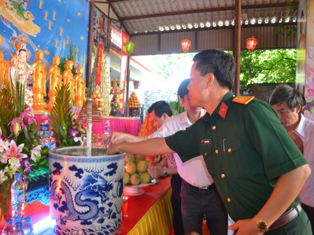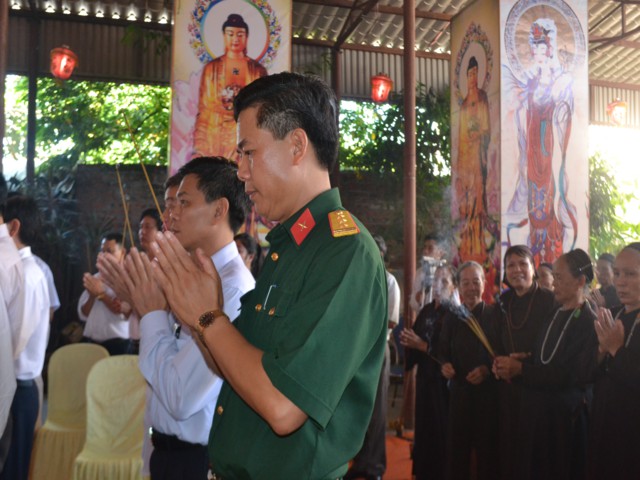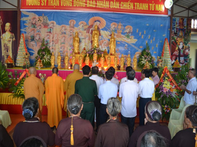 Hôm nay là ngày thứ 2 của Đại lễ cầu siêu, sau nghi thức niệm Phật cầu gia bị, chào quốc kỳ, đạo kỳ, Chư tôn đức Tăng Ni, các cấp chính quyền của địa phương và bà con nhân dân, Phật tử đã làm lễ dâng hương bạch Phật và tụng kinh Di Đà cầu siêu cho anh linh các anh hùng liệt sỹ sớm được siêu thoát và sinh về cảnh giới lành.