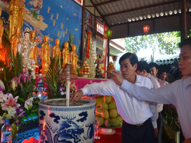 Quang lâm và chứng minh Đại lễ có ĐĐ. Thích Quảng Truyền – Ủy viên HĐTS kiêm Phó trưởng ban hướng dẫn Phật tử TW GHPGVN, Phó trưởng BTS GHPGVN tỉnh Lạng Sơn, ĐĐ. Thích Quảng Minh – ủy viên BTS GHPGVN TP Hải Phòng, Trưởng BTS GHPGVN huyện Tiên Lãng; ĐĐ. Thích Tục Phát, Phó BTS GHPGVN huyện Tiên Lãng, chư tôn đức Tăng Ni các chùa, tịnh thất trên địa bàn huyện Tiên Lãng cùng đông đảo bà con, tín đồ, Phật tử trên địa bàn huyện Tiên Lãng.