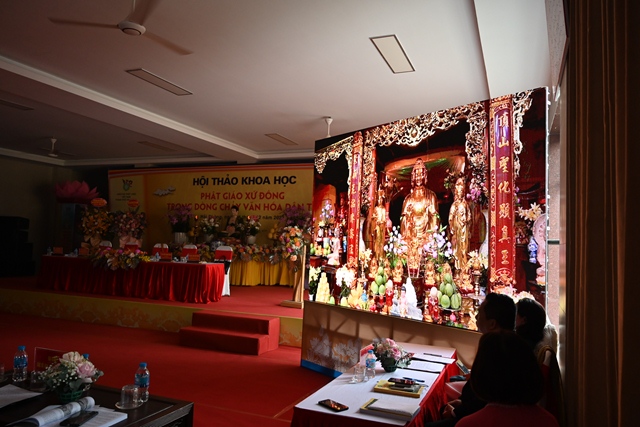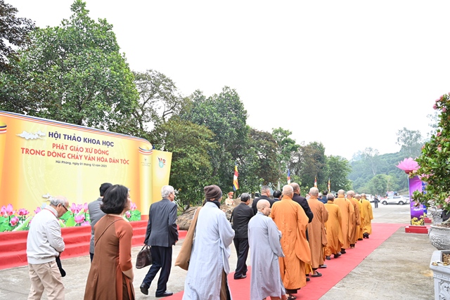 Tại Hội thảo, các đại biểu đã lắng nghe 6 bài tham luận của các nhà khoa học: Hòa thượng Tiến sỹ Thích Gia Quang với đề tài “ Văn hóa Phật giáo xứ Đông trong dòng chảy văn hóa dân tộc”, Hòa thượng tiến sỹ Thích Thanh Đạt với đề tài “ Khái quát tư tưởng Phật học của vua Trần Nhân Tông trong tác phẩm cư trần lạc đạo phú”, Đại đức TS. Thích Nguyên Toàn với đề tài “ Di sản âm nhạc và múa dẫn lục cúng của Phật giáo xứ Đông: Những vấn đề thảo luận”, nhà nghiên cứu Nguyễn Đại Đồng với đề tài: “ Giải pháp bảo tồn và phát triển giá trị văn hóa Phật giáo Hải Phòng”, Nhà sử học Tăng Bá Hoành với đề tài: “ Phật giáo xứ Đông”; nhà nghiên cứu Nguyễn Văn Phương với đề tài: “ Nghệ thuật kiến trúc Phật giáo xứ Đông.”