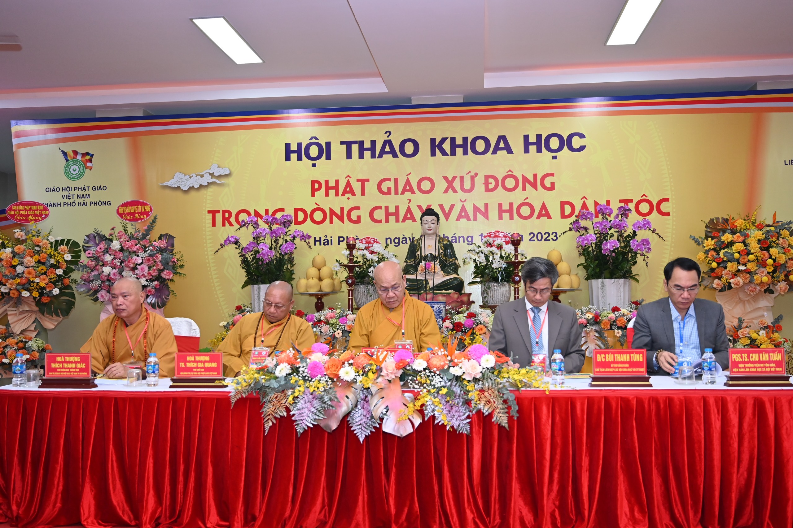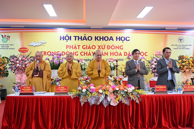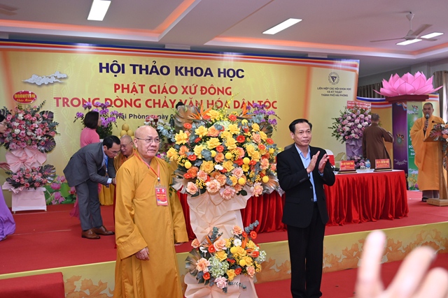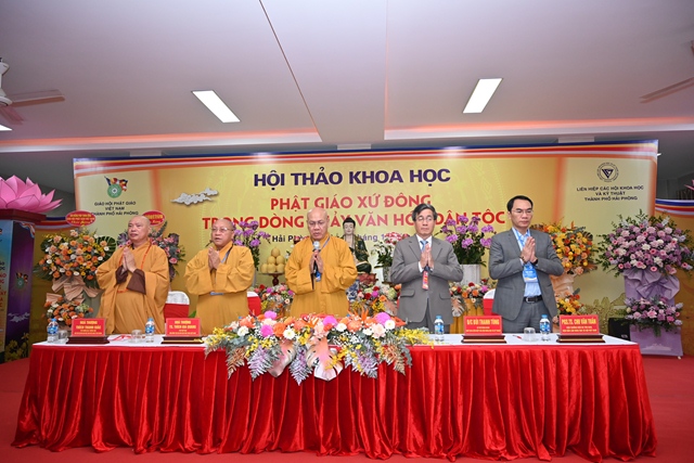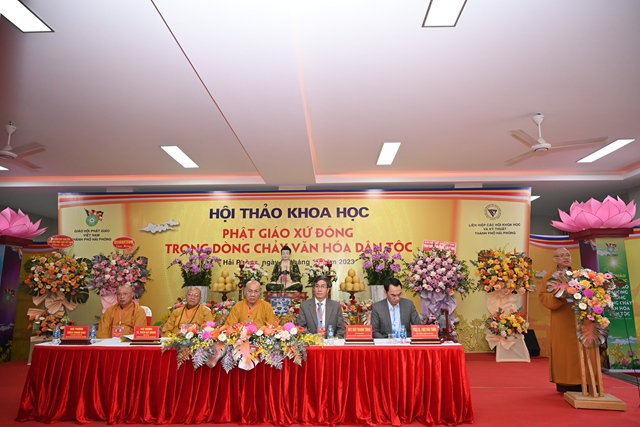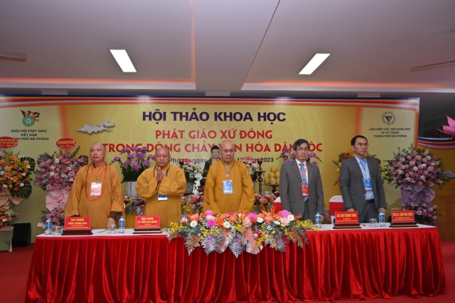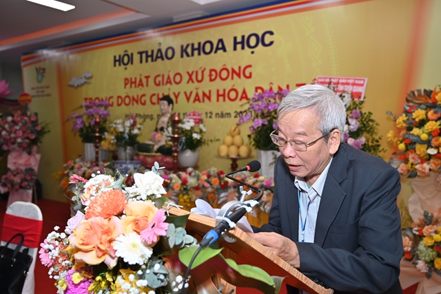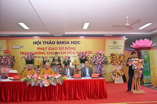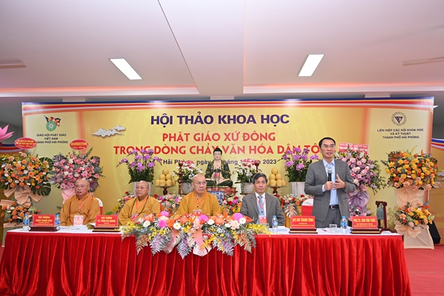 Phát biểu khai mạc Hội thảo, Tiến sỹ Bùi Thanh Tùng – Chủ tịch Liên hiệp các Hội khoa học và kỹ thuật thành phố Hải Phòng nhấn mạnh Hải Phòng là một trong những nơi đầu tiên Phật giáo du nhập vào nước ta. Cùng với sự phát triển của mình, văn hóa Phật giáo xứ Đông có lịch sử khá sớm và phát triển liên tục. Để khơi dậy mạnh mẽ hơn nữa những nét đẹp văn hóa truyền thống dân tộc, cũng như để biến văn hóa trở thành sức mạnh nội sinh, thành động lực xây dựng thành phố và Đất nước ngày càng giàu đẹp, Ban tổ chức Hội thảo mong muốn các nhà khoa học, các nhà quản lý, chư tôn đức lãnh đạo Giáo hội và quý đại biểu tham gia, đóng góp ý kiến, đề xuất những giải pháp mang tính đột phá, nhằm tiếp tục bảo tồn và phát huy giá trị tài nguyên văn hóa Phật giáo xứ Đông, khai thông mạnh mẽ hơn nữa sự đóng góp vào dòng chảy văn hóa dân tộc.