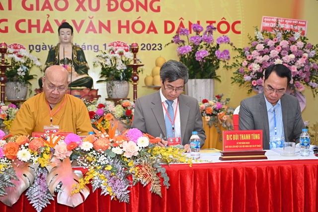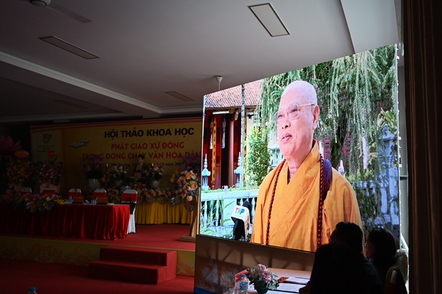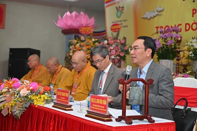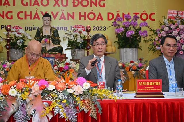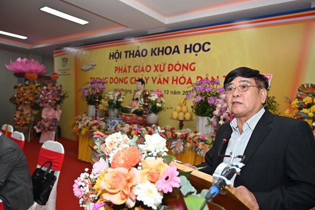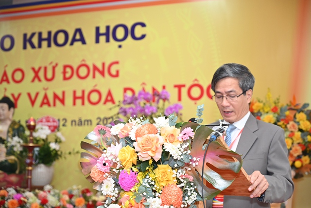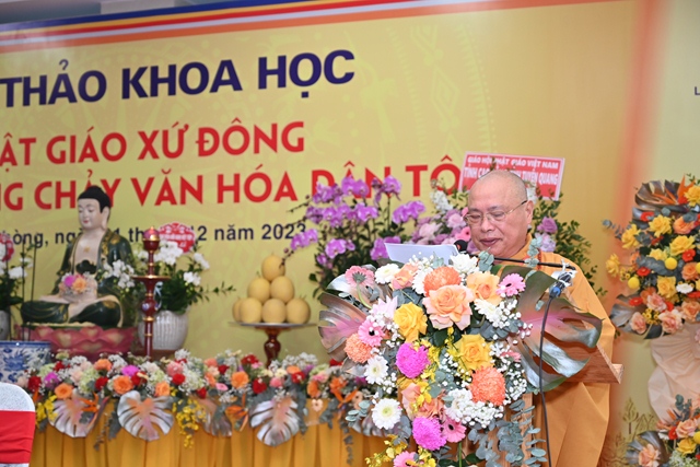 Hòa thượng Tiến sỹ Thích Gia Quangphát biểu tham luận với đề tài “ Văn hóa Phật giáo xứ Đông trong dòng chảy văn hóa dân tộc”