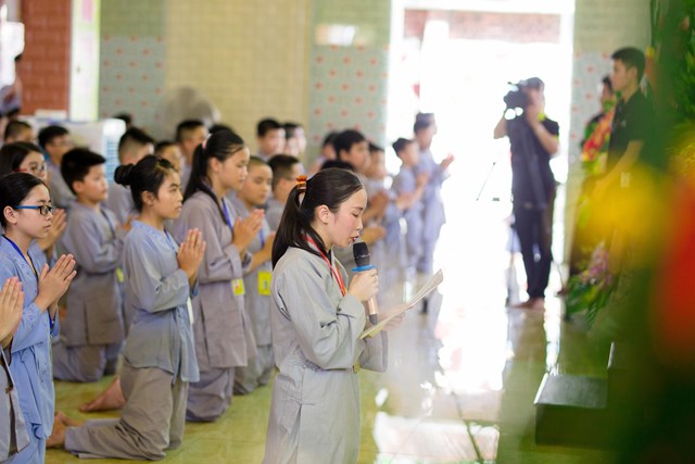 Đại diện khóa sinh đọc lời phát nguyện trước khi tham dự khóa tu