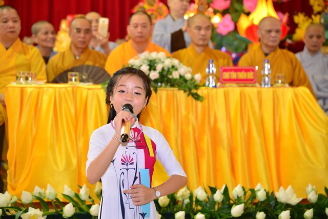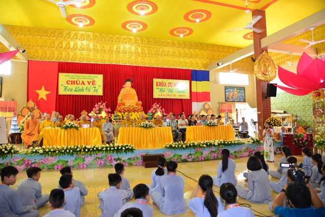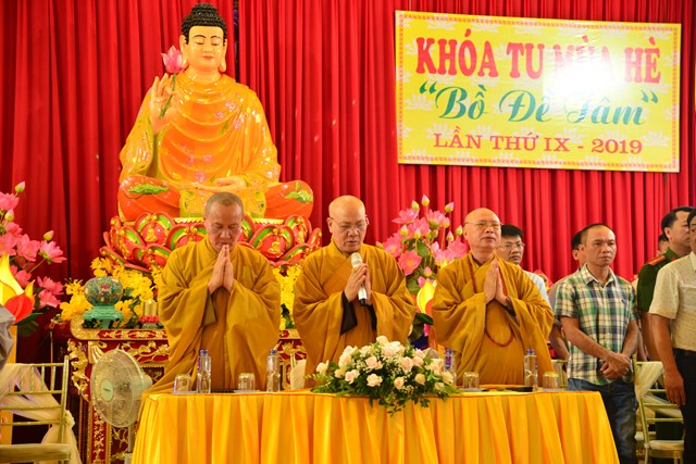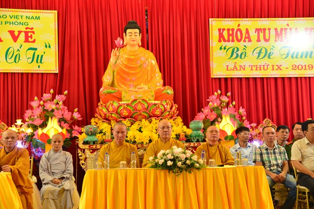 Trước khi kết thúc buổi lễ bế mạc, HT. Thích Quảng Tùng – Phó chủ tịch HĐTS, trưởng BTS GHPGVN thành phố Hải Phòng đã ban đạo từ tán thán công đức của Ni Sư trụ trì, trưởng Ban tổ chức khóa tu và các sư thầy, sư cô trực tiếp hướng dẫn khóa tu năm nay. Đồng thời, Hòa thượng chứng minh đã ban đạo từ nói về ý nghĩa chủ đề khóa tu “ Bồ Đề Tâm” và ý nghĩa của từ “ Tu” trong đạo Phật. Qua đó, các khóa sinh đã hiểu được như thế nào là “ Bồ Đề Tâm” và làm thế nào để có được tâm Bồ Đề. Trước khi dừng lời, Hòa thượng đã sách tấn các bạn khóa sinh tu học thật tốt, thực hiện đúng nội quy của Ban tổ chức đã đề ra.