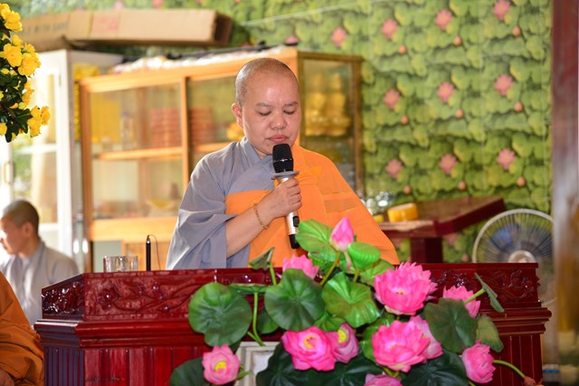 Ni sư Thích Tâm Chính – Trưởng BTC khóa tu phát biểu khai mạc